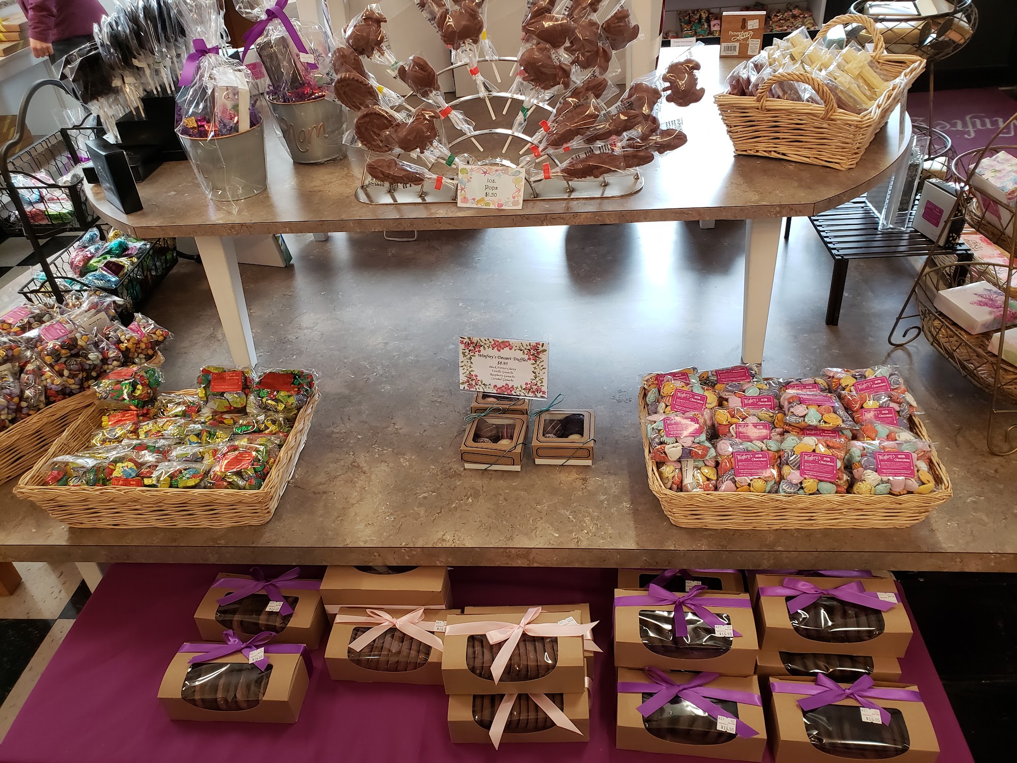 Winfrey's Fudge and Chocolates offers a great selection of treats, including a large section of sugar-free options, at reasonable prices. Customers appreciate the pleasant and kind staff who never rush them while they browse the adorable seasonal goodies and decorations. The homemade fudge and chocolates, like the delicious penuchi and coconut cream, are highly recommended, providing a breath of fresh air from store-bought sweets. Winfrey's is a local favorite for making holidays sweeter and providing high-quality confections in a welcoming atmosphere.