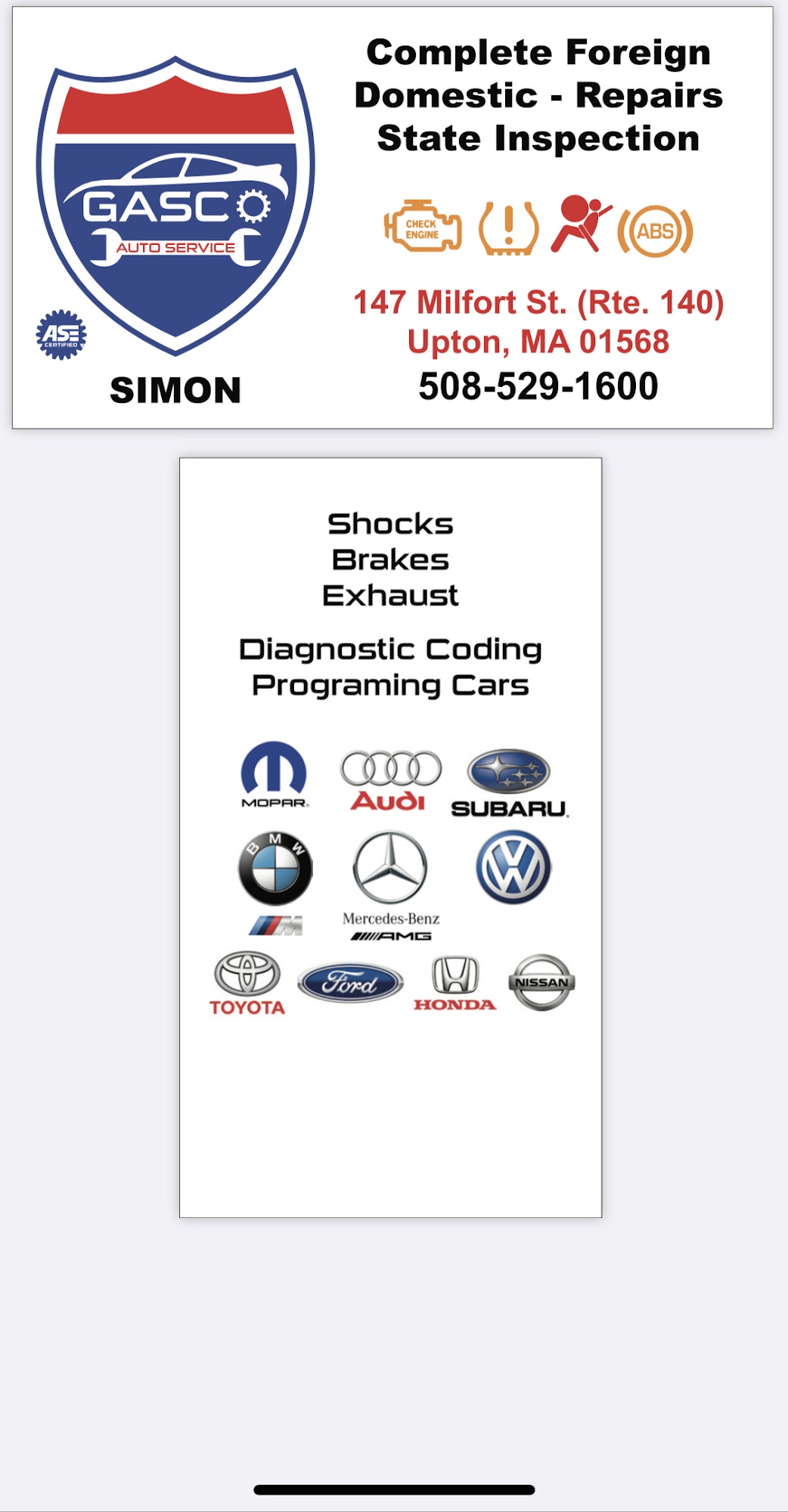 The gentleman Liam he is always wonderful to me. Very respectful very kind and he knows his job. I go there all the time to get my inspection sticker yes indeed thank you Gasco..