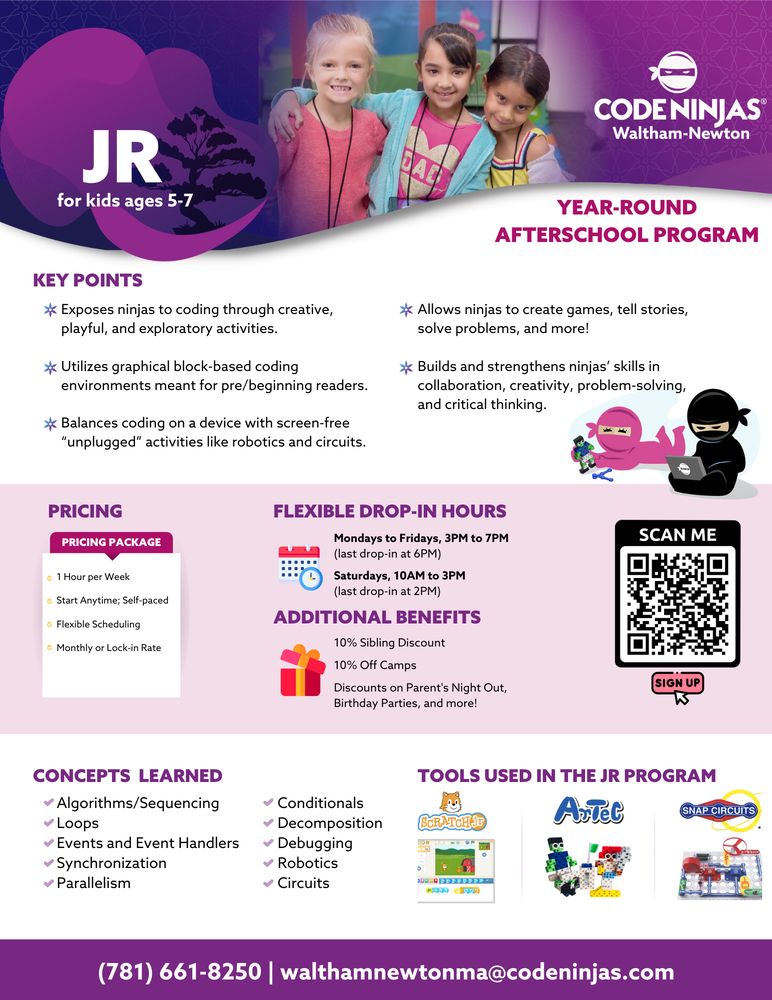 Code Ninjas Waltham-Newton is a highly recommended coding program for children. The facility is clean and engaging, with a welcoming environment created by the passionate owner and dedicated staff. Students, including a robot-loving 5-year-old, have thoroughly enjoyed the coding journey, learning new skills and feeling exhilarated by their experiences. The owner works hard to deliver an outstanding learning experience, with the counselors being very good with the kids. Parents praise the program, highlighting the warm and accommodating staff who are willing to listen and address any doubts or queries. Overall, Code Ninjas Waltham-Newton is an excellent choice for parents looking to explore the world of coding with their children.