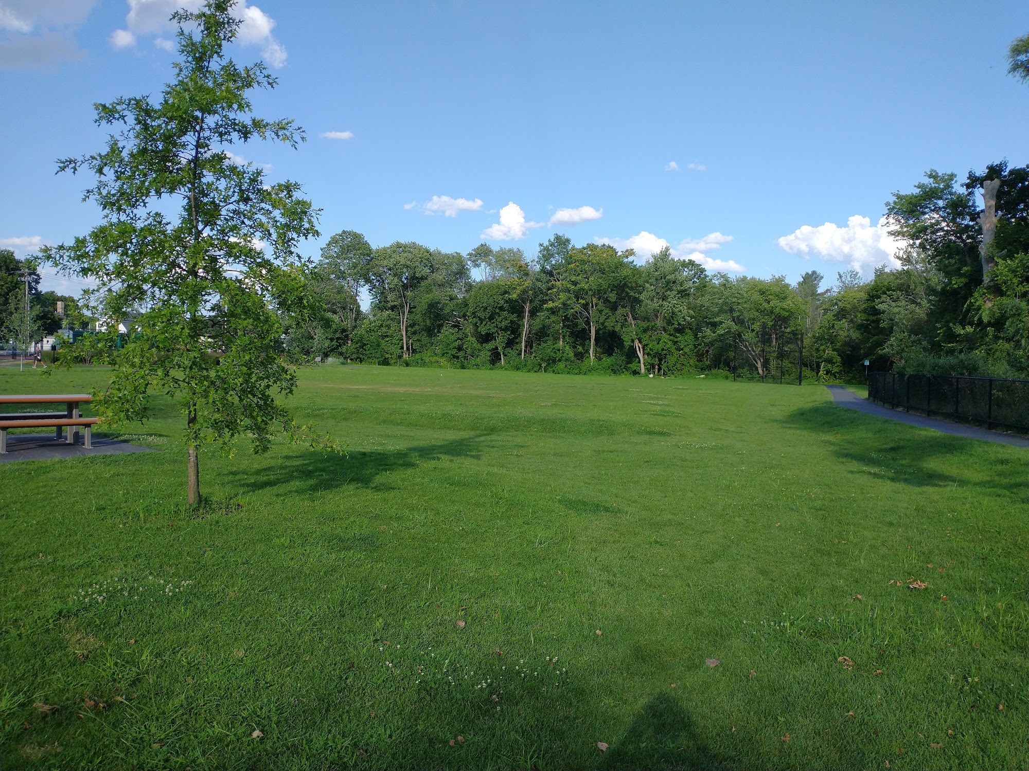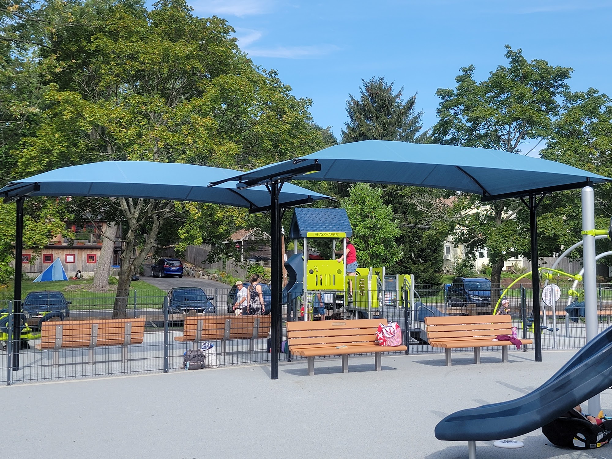 One of my favorite playgrounds in Waltham - it has basketball, tennis, splash pad, volleyball net, walking loop, and the playground has a variety of activities for kids of all ages. The grass is nice to sit on and there are a few picnic tables! Wish there were more!