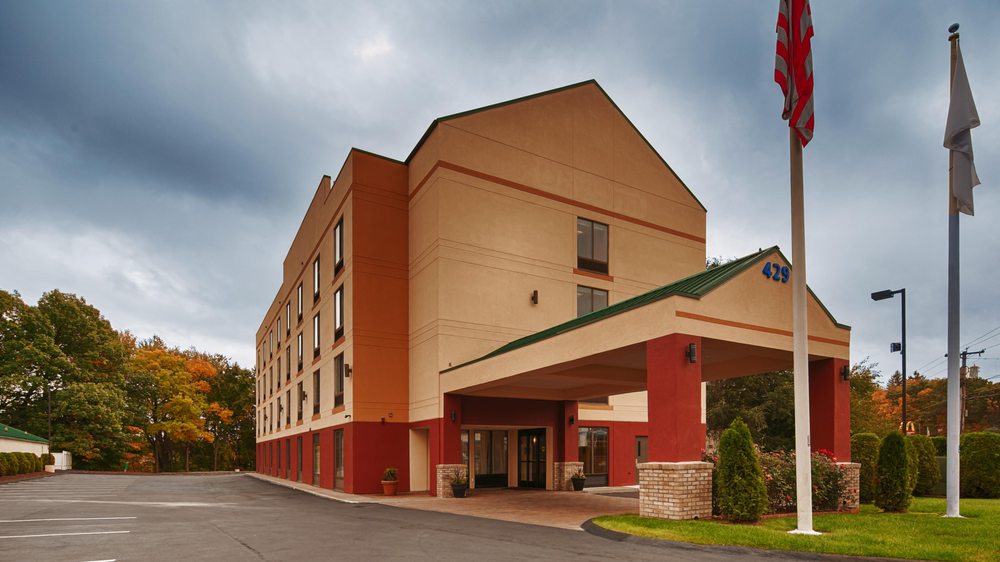 Best Western Springfield West Inn is a clean and convenient hotel located close to many attractions, restaurants, and shops. Guests appreciate the friendly and efficient staff, with several reviews highlighting the welcoming service and cleanliness of the rooms. The hotel offers a basic but decent breakfast, including scrambled eggs, sausage links, pancakes, bagels, cereal, coffee, juice, and fruit, which is replenished regularly. The rooms are generally comfortable and quiet, with well-working AC units and clean sheets; however, some guests found the beds on the soft side and noted that the overall room cleanliness could be improved. The hotel’s exterior and common areas show signs of aging, with some furniture and fixtures appearing worn or cracked. Amenities like the pool were closed during visits, but parking is ample. The location is praised for being close to Six Flags, MGM, the river, and various dining options, making it suitable for short stays or family visits. Guests feel safe and find the hotel a good value for the price paid, especially given its proximity to Springfield attractions, museums, and highways. Overall, it’s a reliable choice for travelers seeking a clean, friendly, and conveniently located hotel.