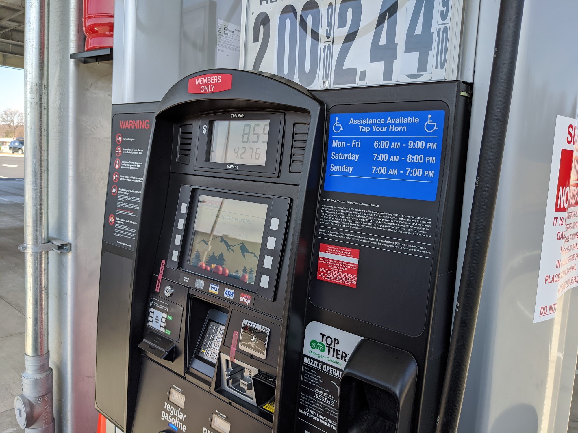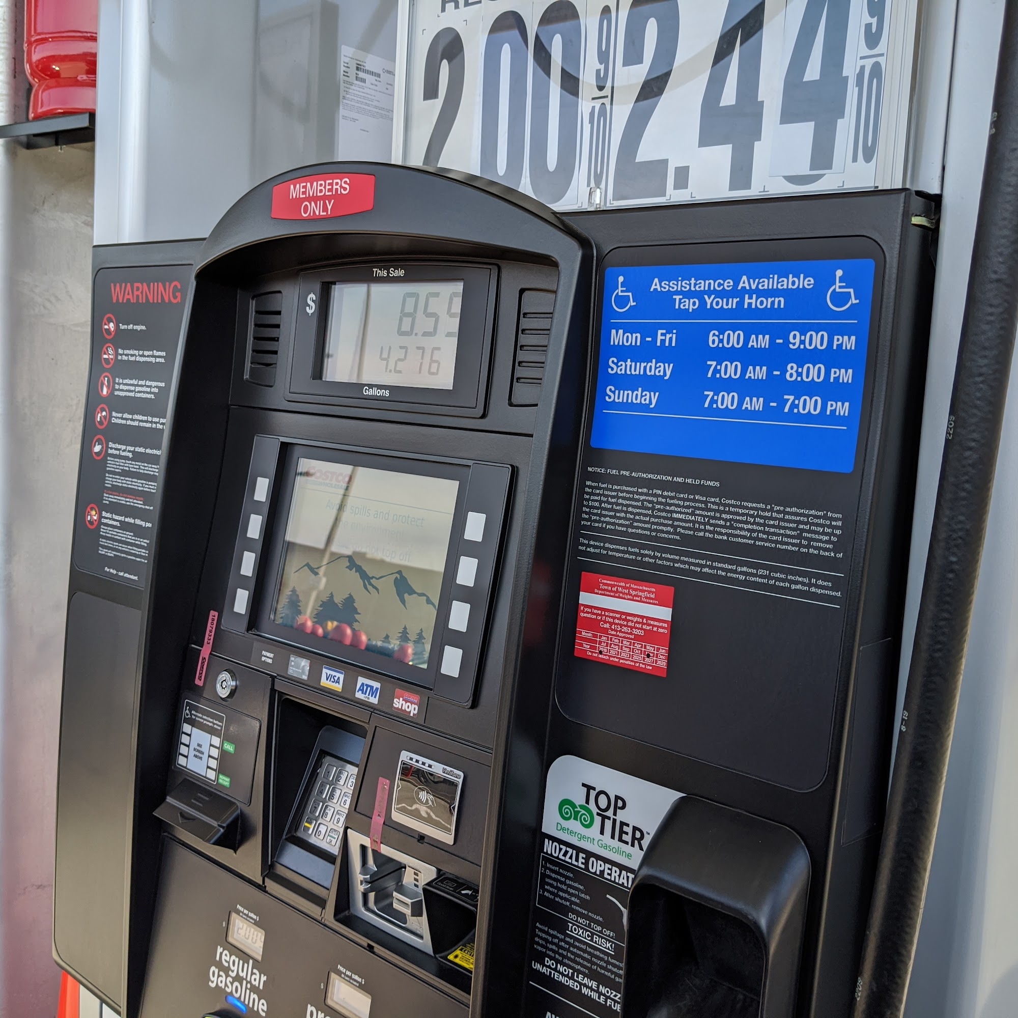 Need Costco membership. Helpful attendants. Best gas prices.