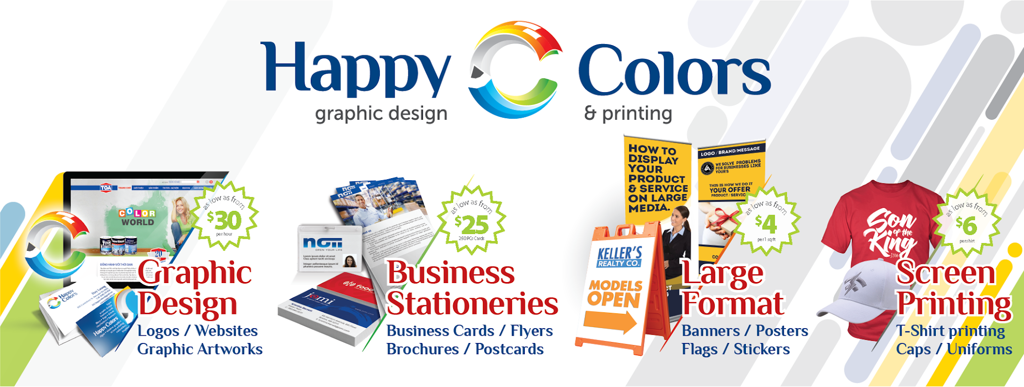 Looking for high-quality printing services? Look no further! At Happy Printing, we offer a wide range of printing services to meet all your needs. From business cards and flyers to banners and signs, we've got you covered. Our state-of-the-art technology ensures that every product we print is of the highest quality. We love seeing our customers happy! Share your experience with us, and we might feature you on our page. Got questions? Our team of experts is always here to help. Simply drop us a message, and we'll get back to you in no time. Thank you for choosing Happy Colors - Printing & Sign. Let's make your printing dreams a reality!