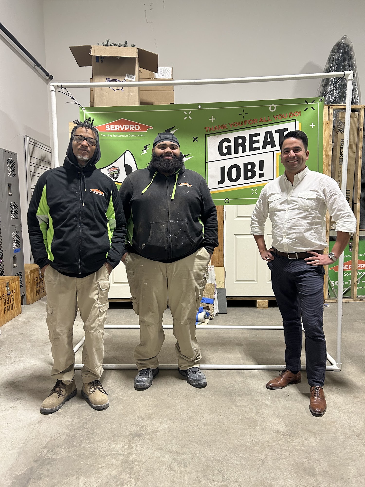 Dan and Josiah did a great job demolishing our damaged ceiling and wall from a broken hot water heating pipe. After the demo, they cleaned everything up real well. They were both very courteous and thoroughly explained the whole process. Nice guys. We are very happy with their service and would use ServPro again for sure.