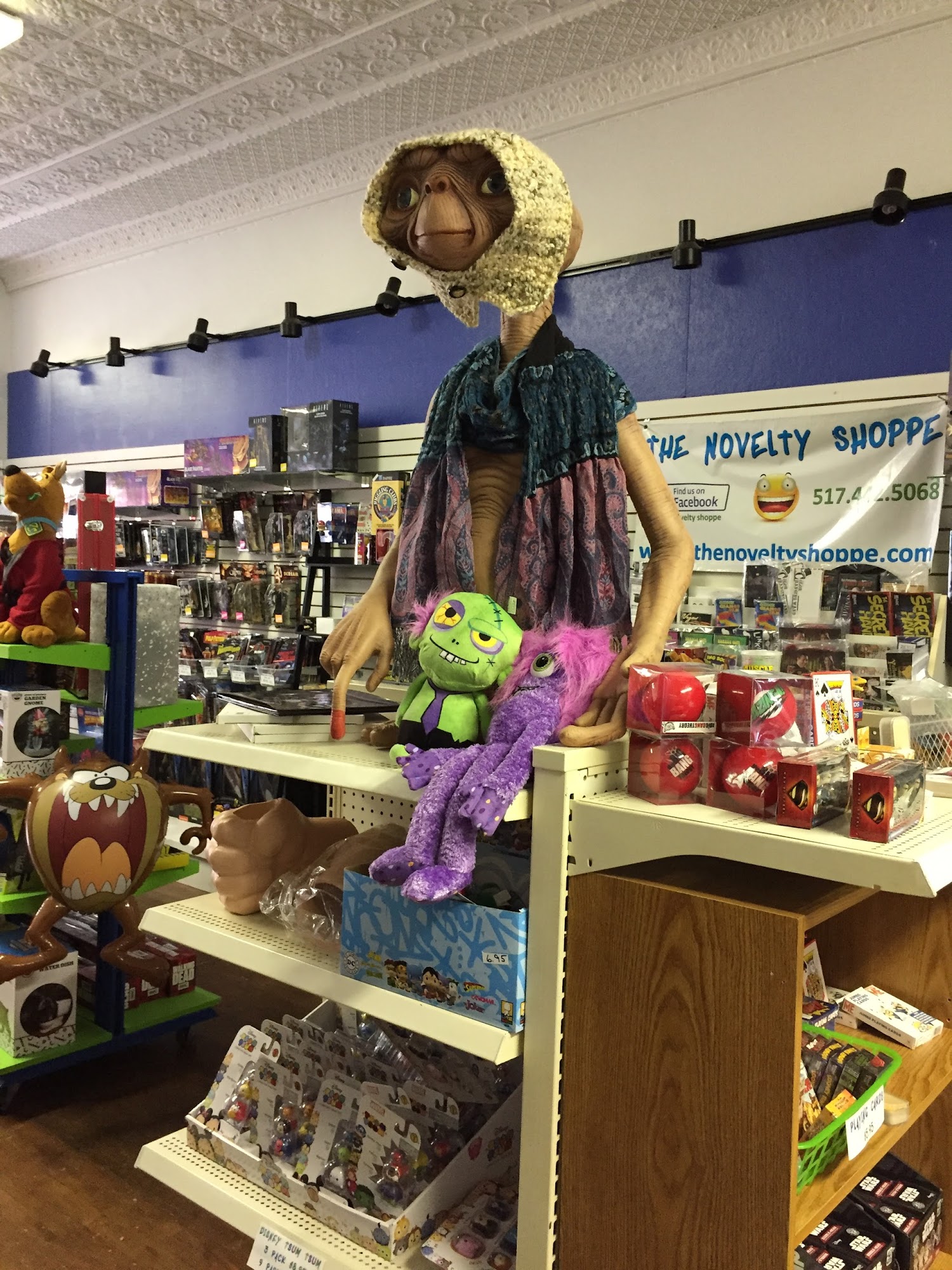 The Novelty Shoppe is a delightful store that offers a wide variety of fun items, including comics in good condition, unique toys, and delicious candies. Customers appreciate the owner's dedication to meeting their needs, often providing special orders and updates. The shop features a long wall of Funko Pops and various unique stuffed animals, making it a treasure trove for collectors and casual shoppers alike. Visitors often leave with affordable finds, and many enjoy the nostalgic experience of rediscovering items from their childhood. With excellent customer service and a friendly atmosphere, The Novelty Shoppe is a special place worth visiting.