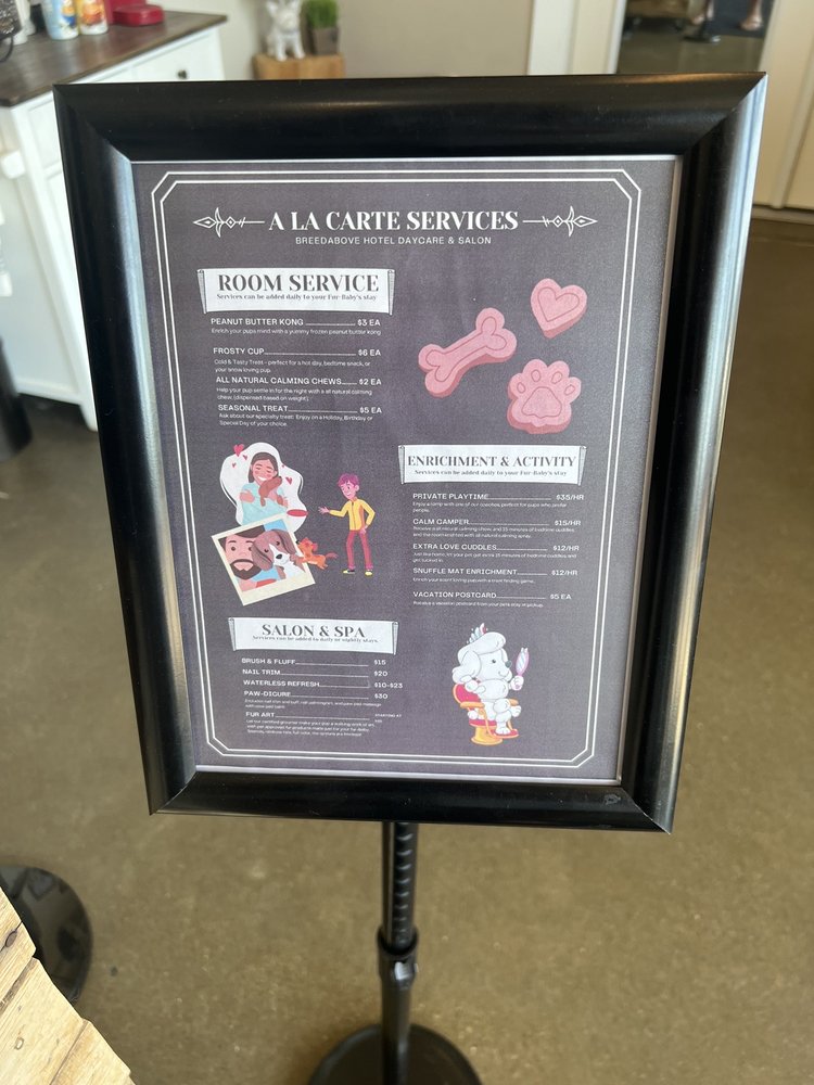 Our dog Riley had a great experience at Breed Above.They processed multi-level (wet, dry, meds) food very well. Facilitated Riley’s interaction with other dogs. Provided top notch daily status reports with pictures during his 8 day stay. Kept me engaged when challenges arose.