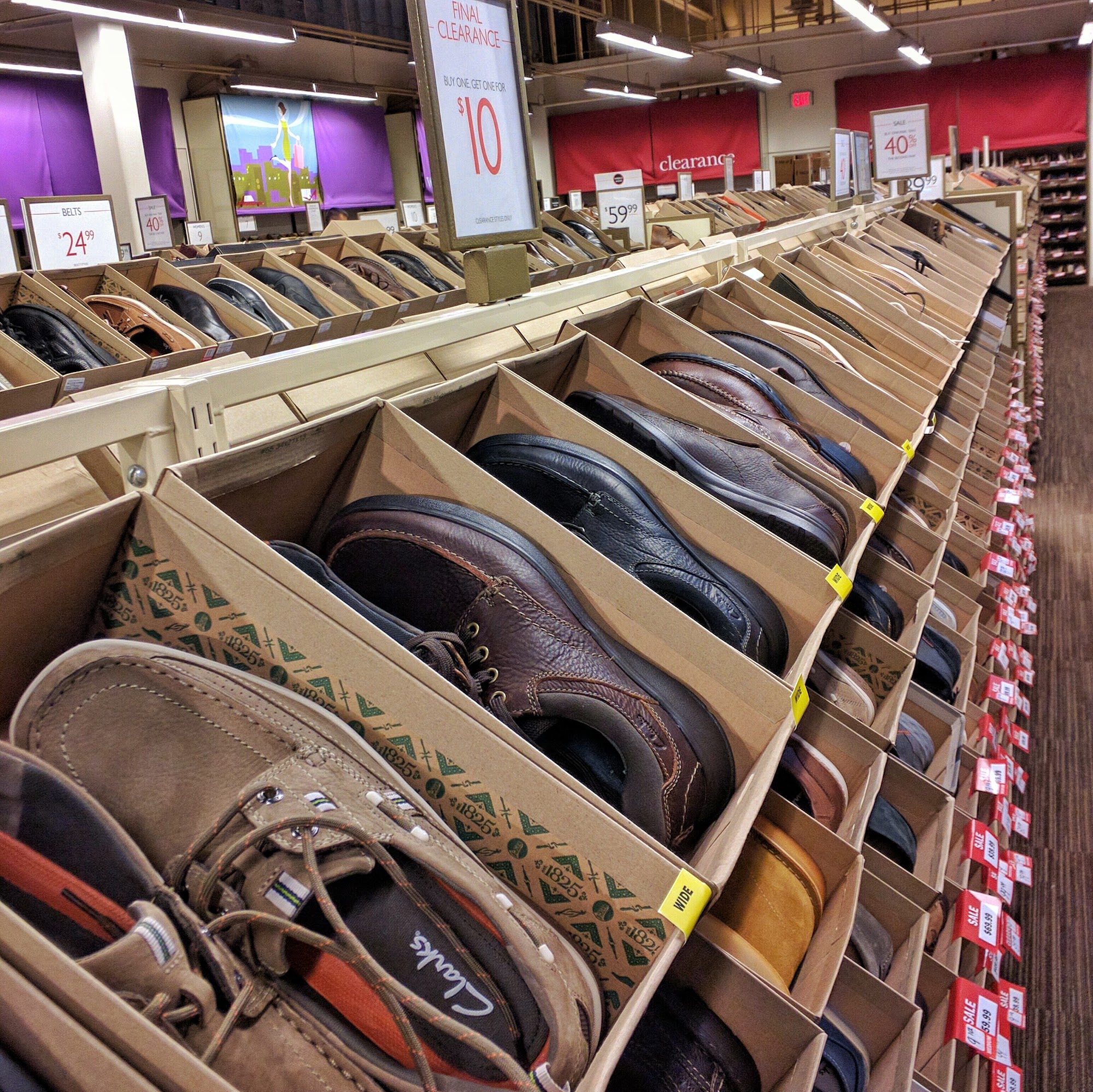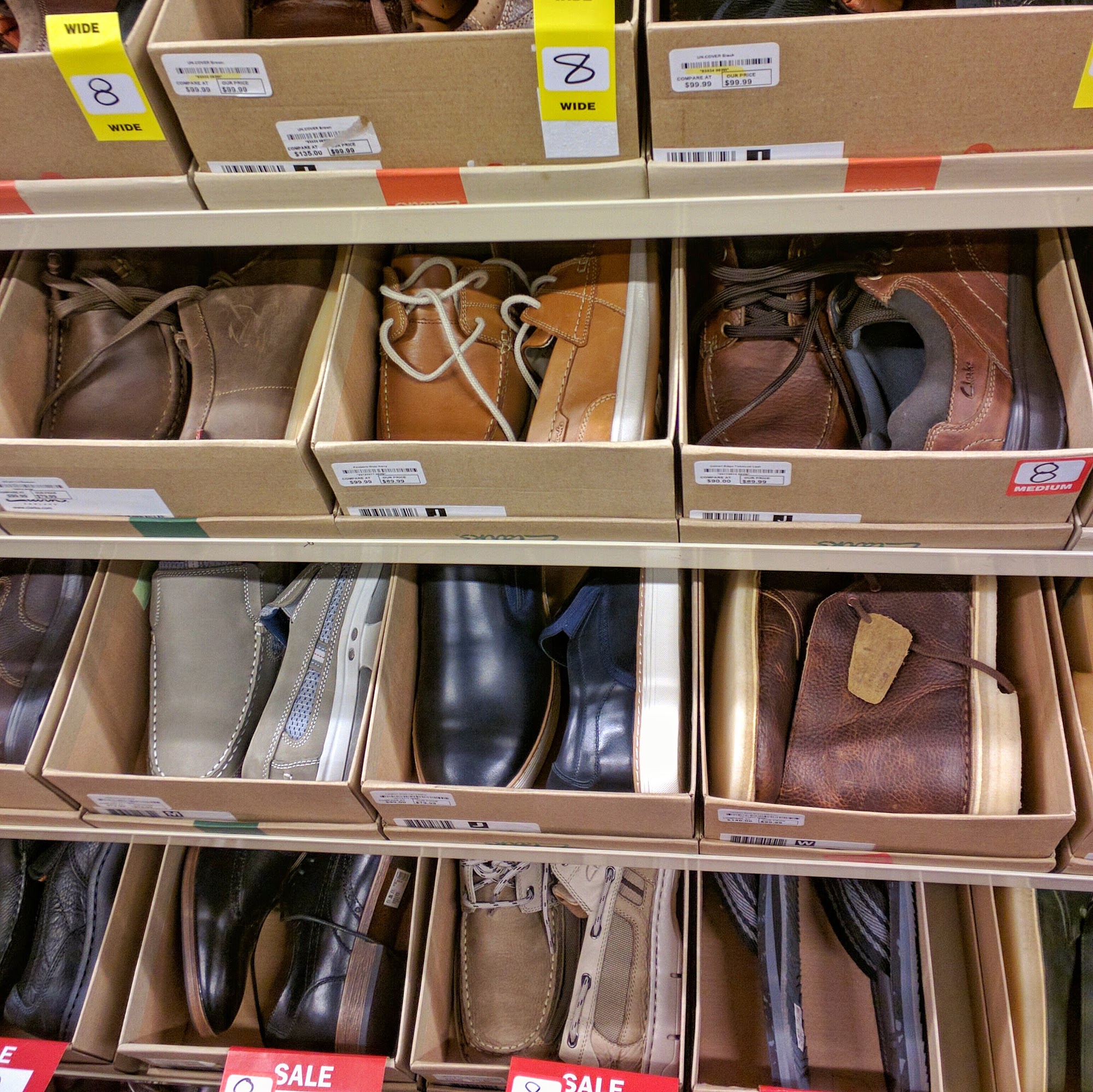 Clarks Bostonian Outlet offers good prices and a wide selection of shoes. The store layout displays all shoes openly, making it easy for customers to choose. Employees are helpful and friendly, providing good service. Customers often find great deals, such as shoes on sale for very low prices. Many visitors appreciate the variety and the opportunity to buy shoes for themselves or their children at affordable prices. The store is a popular place for those looking for stylish and budget-friendly footwear.