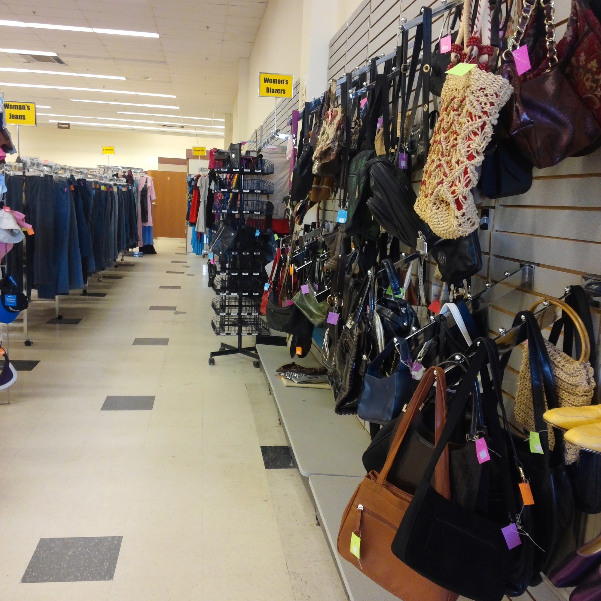 Best thrift store I've seen in a while. Clothes were WELL organized by size and color, books were organized by section and fiction was alphabetized, household stuff was well tidied and not too busy, everything had space to be seen, incredible. Prices a little high for dvds, but not the worst I've seen 👍