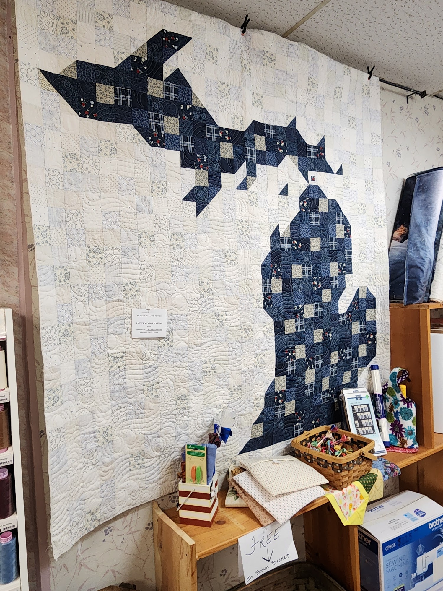 This store is packed with great variety of fabrics. It is well organized. Staff is helpful and nice. The owner made this beautiful quilt.