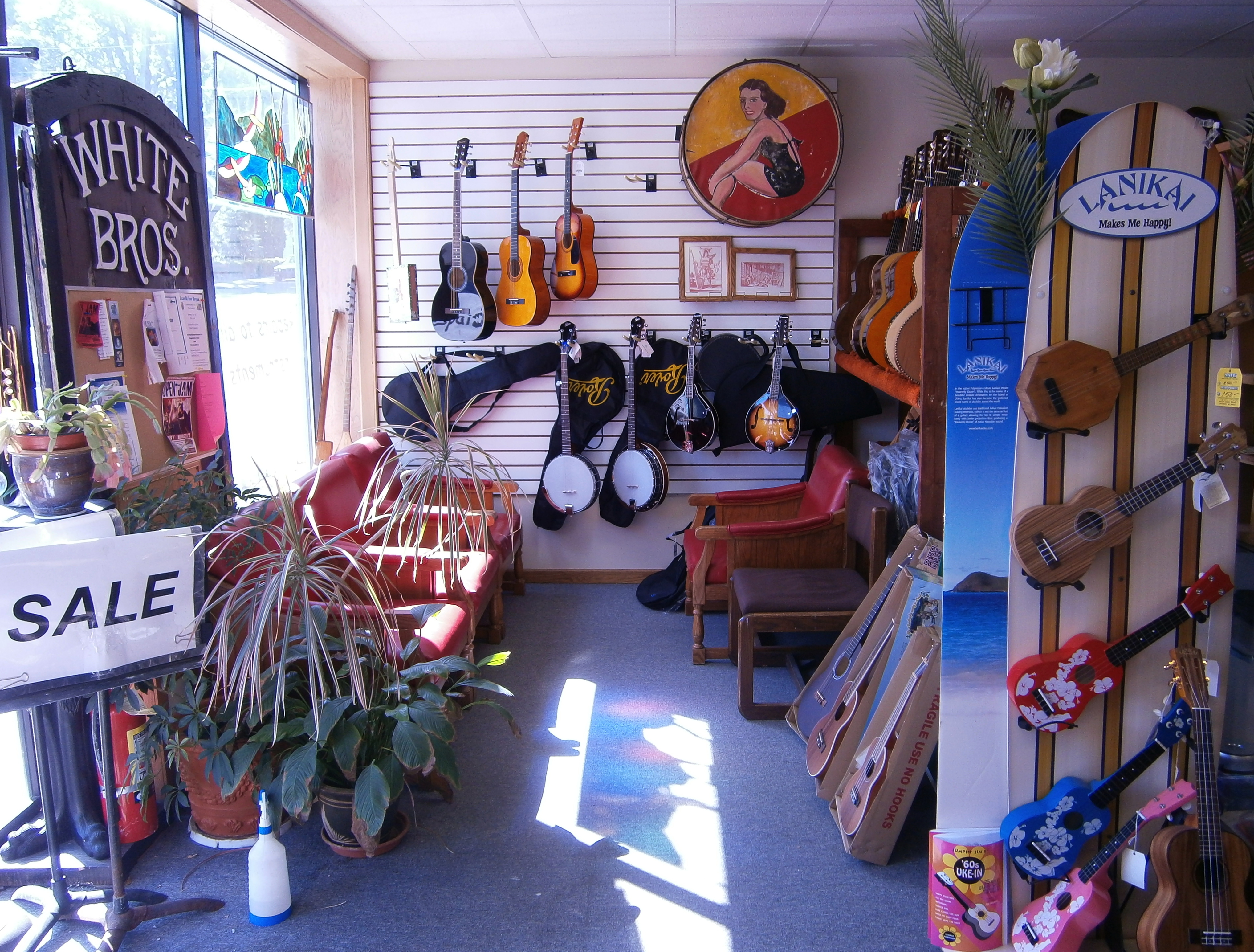 White Bros. Music is a business established in 1976 that deals in nearly every type of musical instrument and accessory, including hard to find and unusual ethnic instruments. If not in stock, special orders can be filled within a few days. The place is like a walk back in time, filled with the smells of a long ago time and many interesting and unique instruments for sale as if in a museum. A complete repair shop on site is staffed by a professional luthier with decades of experience, providing excellent and impeccable repairs and maintenance. He is a very good luthier, so knowledgeable in everything he does, with deep calluses and dirty hands from his craft. The shop services fretted, orchestra and band instruments, with guitars and violin family instruments as a specialty. He always provides top quality at affordable prices and offers all his time and insight to help customers, from selling a unique violin to answering a beginner's simple questions. We need to support people and craftsmen like this.