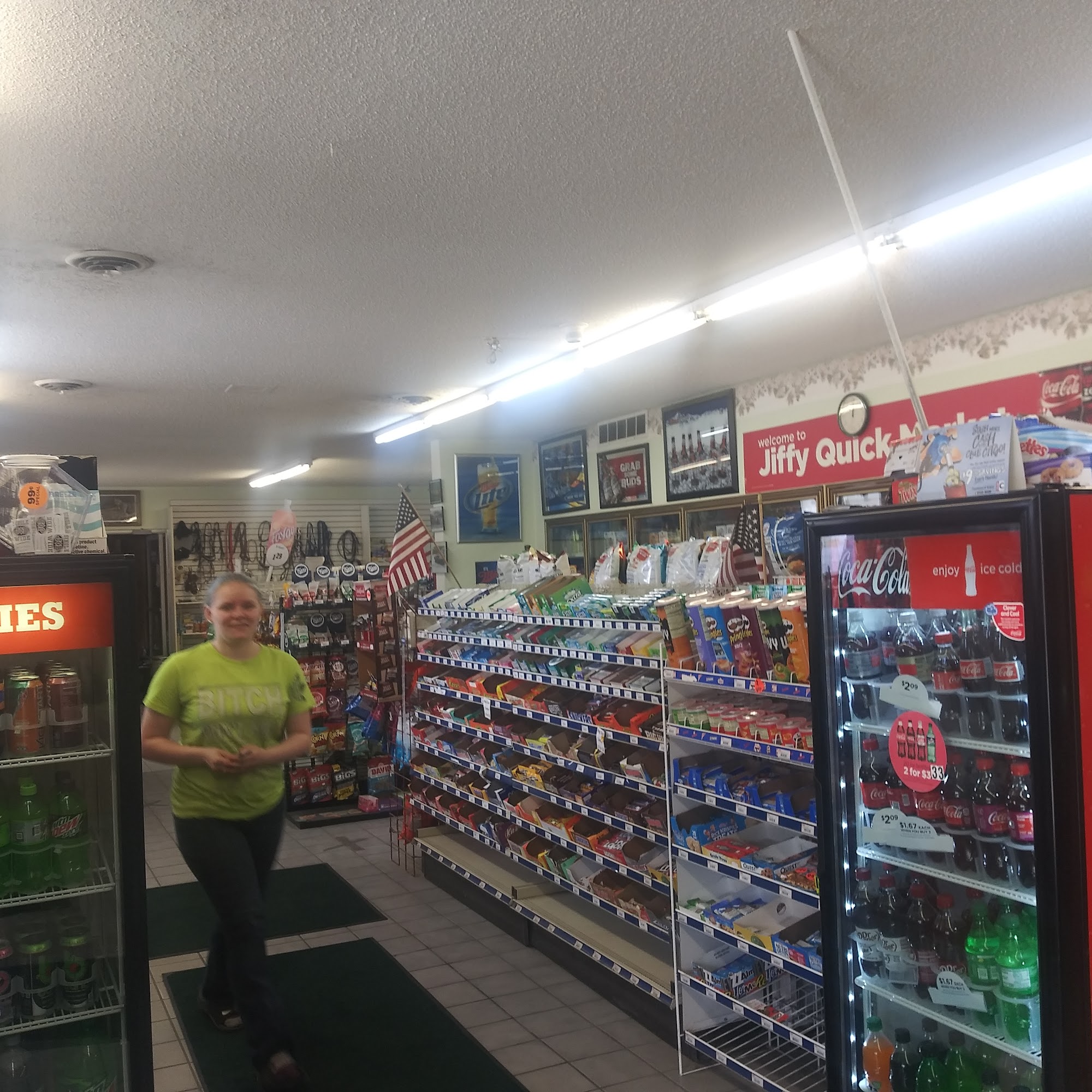 Clean well light service station. There's an ATM in the parking lot. Ample space. A large beer & liquor selection in addition to candies and sodas. Nice selection of heady items as well. ;-)
