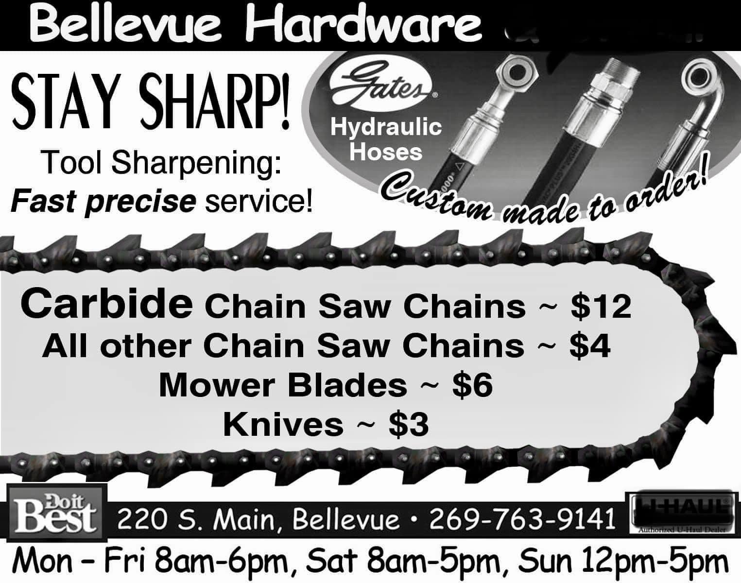 Bellevue Hardware is a great place with great staff and great prices. It is a very helpful hardware store in the small town of Bellevue. The staff always go above and beyond to help find what is needed. They keep the store clean and organized. The business is appreciated and loved by the community. A key service is filling and exchanging propane tanks. The staff are especially helpful in the winter, filling propane for customers while they shop or wait to pay so they do not have to stand in the cold. The prices are cheaper than elsewhere. They also offer perfect dog treats for customers' pets. The staff are so helpful and their assistance is greatly appreciated.