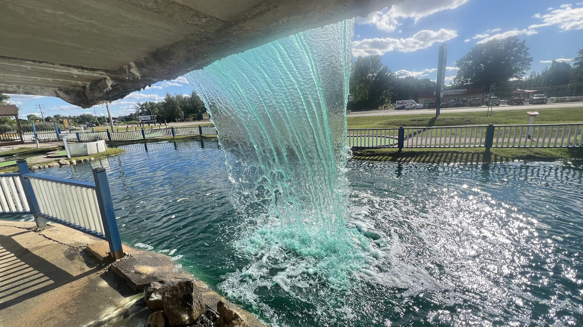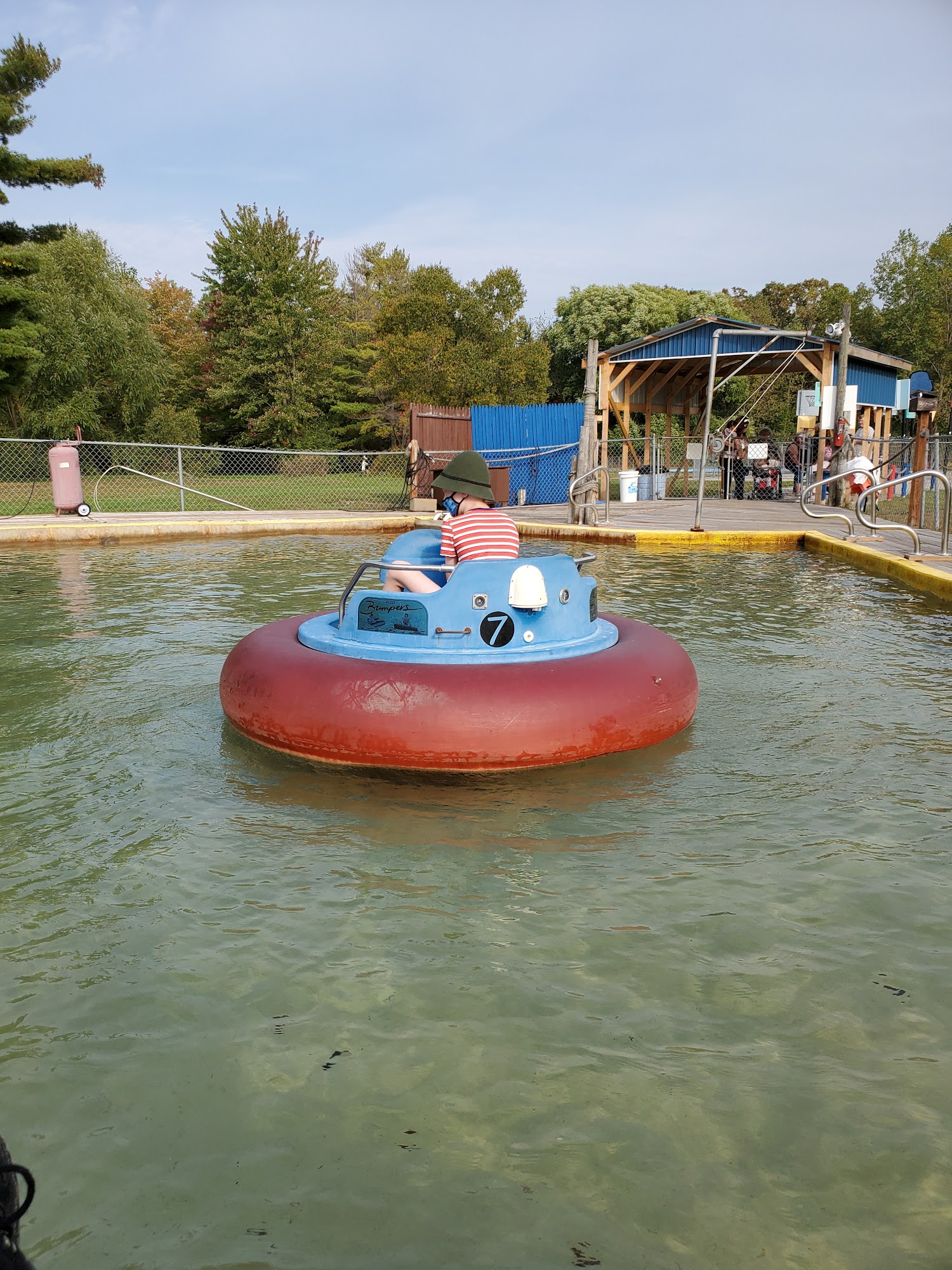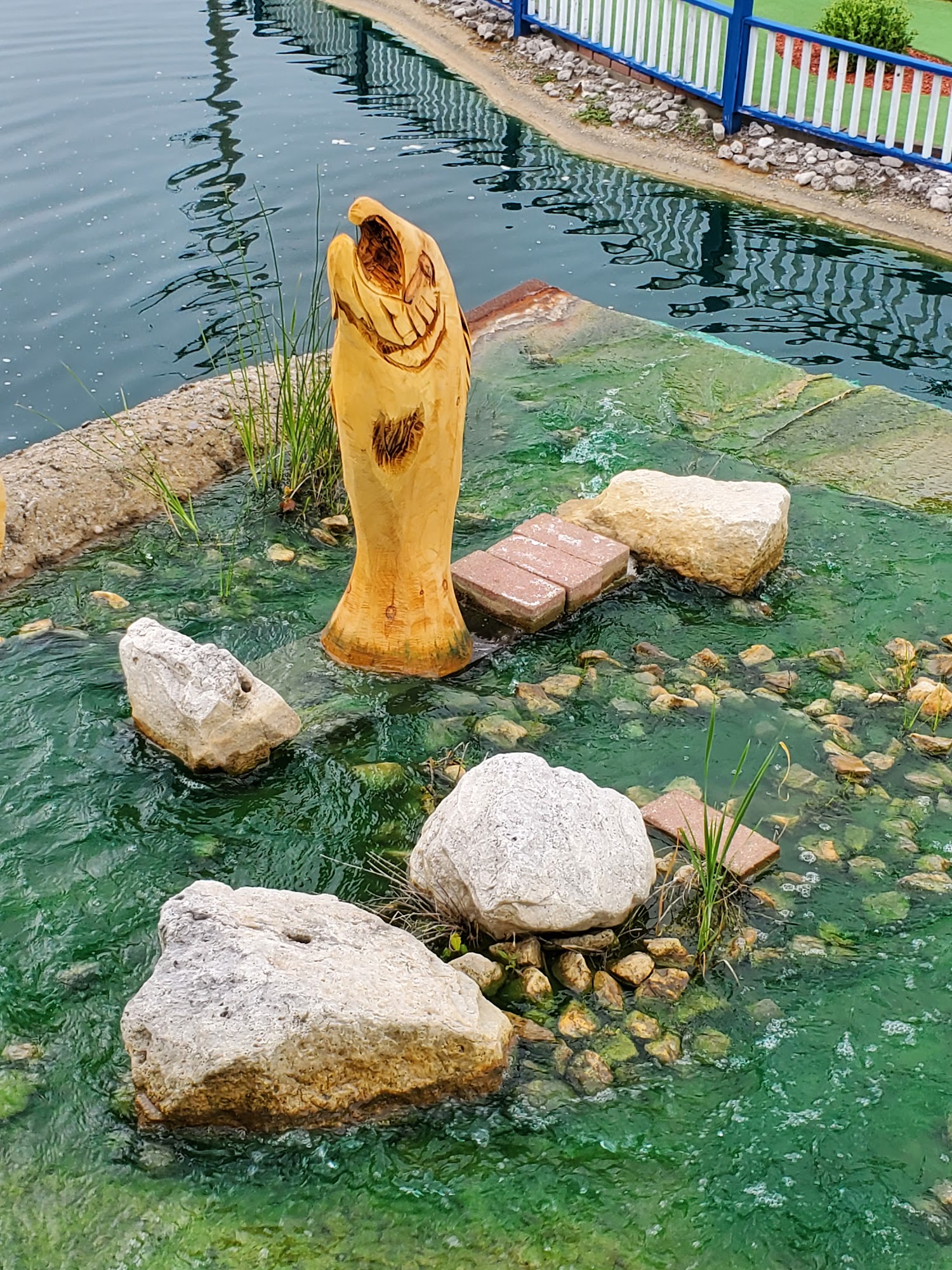 Alpine Mountain Golf offers family fun with two miniature golf courses, go-karts, and bumper boats. The Amateur course goes under a waterfall and on top of a mountain with hills and curves. The Skill course is around the base of the mountain with rock obstacles, providing some challenging holes. Go-karts are noted as so much fun, with double karts available. Bumper boats are also offered with double boats. The attractions are fun and in working order, allowing guests to zip through quickly. Some visitors found the Skill course holes challenging but mostly boring, just green and rocks, while the Amateur course looked more exciting. Opinions on staff varied, with some finding them top notch and the nicest people, while others found them a little rude or unhappy. Some feel the price per activity is a little high. The experience is described as decent, not fancy but great for a casual game, with nothing to be disappointed or thrilled about. It is a place for general family fun. Hours are daily from 10 am to 8 pm, weather permitting.