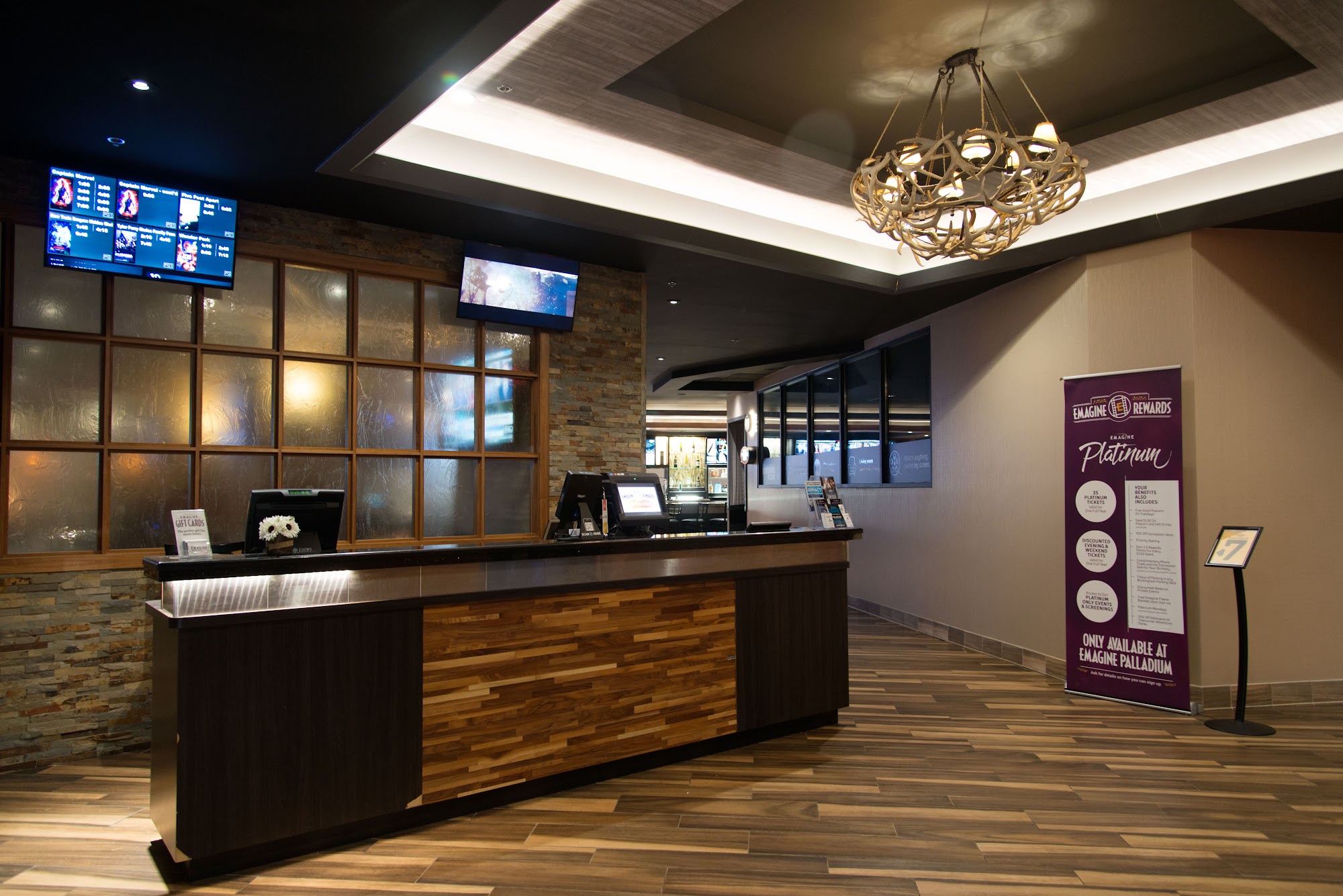 Emagine Palladium offers a variety of movie experiences, including private screening rooms and traditional theaters. The private screening room provides a unique setting for watching movies like Moana 2, with comfortable seats and a cozy atmosphere. However, some technical issues can affect the experience, such as mismatched screen ratio, a persistent green dot caused by a busted pixel, and inconsistent audio quality with crackling sounds during quiet scenes. Service in the private room is friendly, though there may be occasional delays with food delivery. Overall, the concept of private viewing rooms is promising, but execution has room for improvement. The main theater features wide recliners, which are very comfortable, and the venue is generally well-maintained. The bar area offers a great place to relax before or after movies, with movie-themed cocktails and flavors like Cheddar. Parking is conveniently located in a garage across the street, with two hours of free parking, making the experience more convenient. Despite being on the fourth floor, the theater maintains large screens and cozy seats, providing an enjoyable movie experience once inside. Regular visitors appreciate the theater’s atmosphere, especially on weeknights when it tends to be less crowded. The staff is friendly and helpful, and food orders can be delivered directly to seats. The theater also offers a good selection of standard snacks and drinks, although some, like certain pizzas, may not meet expectations. Overall, Emagine Palladium is a popular spot for comfortable seating, good sound quality, and enjoyable amenities, with some minor issues in food quality and technical execution.