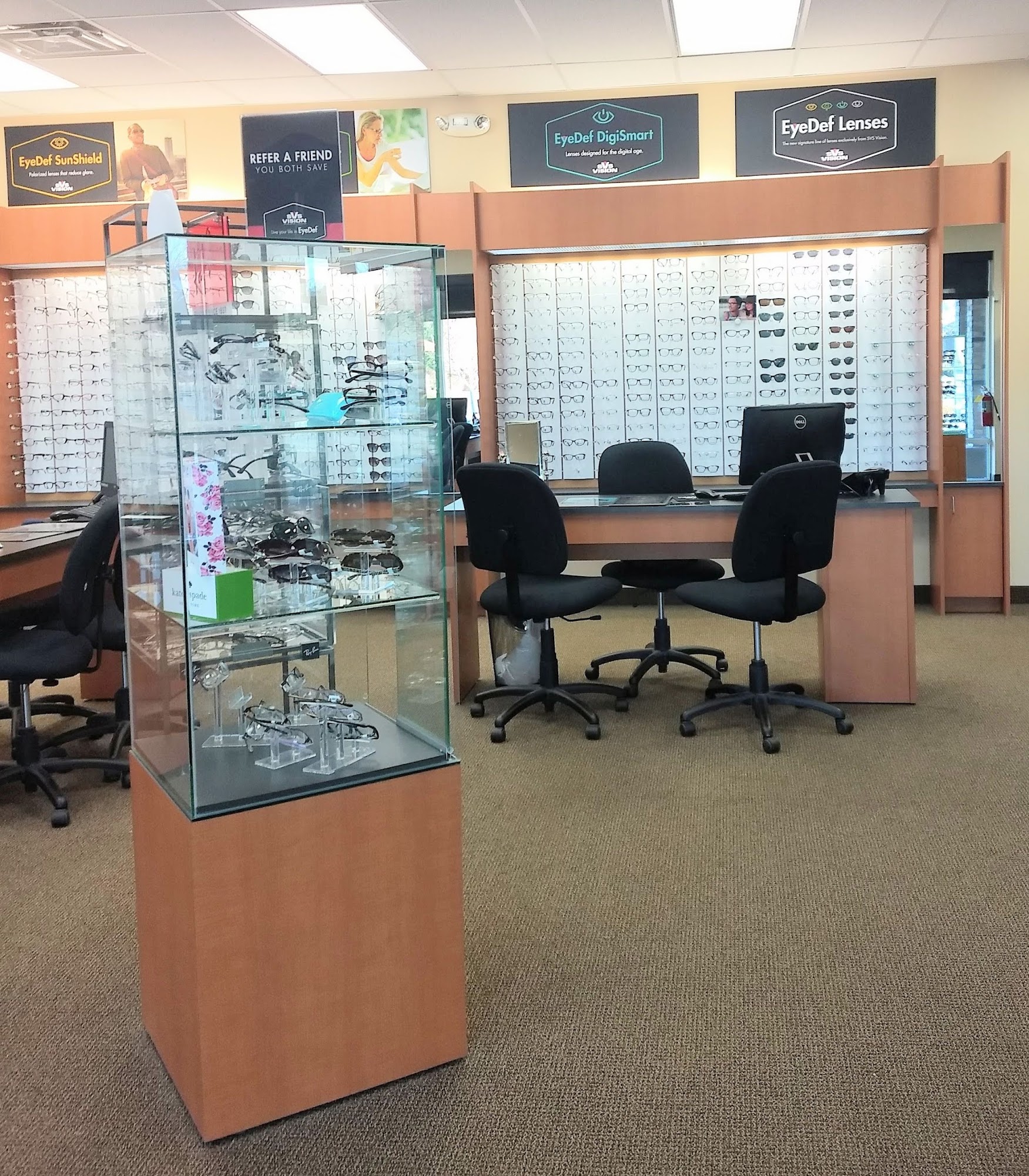 SVS Vision Optical Centers is an eyewear retailer that offers a large selection of American-made eyeglasses, top designer frames, and contact lenses. They provide outstanding eye care with a 45-day 'Gotta Love 'Em' Guarantee, giving their customers peace of mind. The staff is known for being extremely knowledgeable, friendly, and caring. Customers praise the clean store, timely and professional service, and the team's compassion. While there may be occasional delays in completing eyeglasses, the overall experience at SVS Vision is excellent, with customers expressing their satisfaction and appreciation for the services provided.