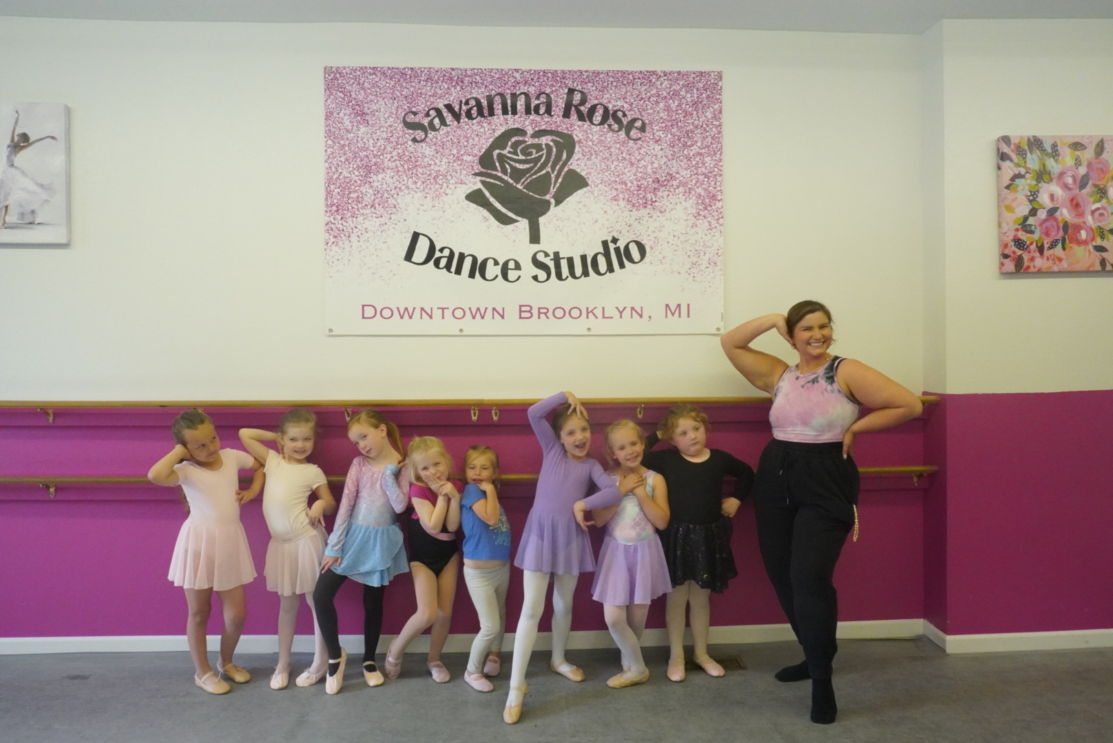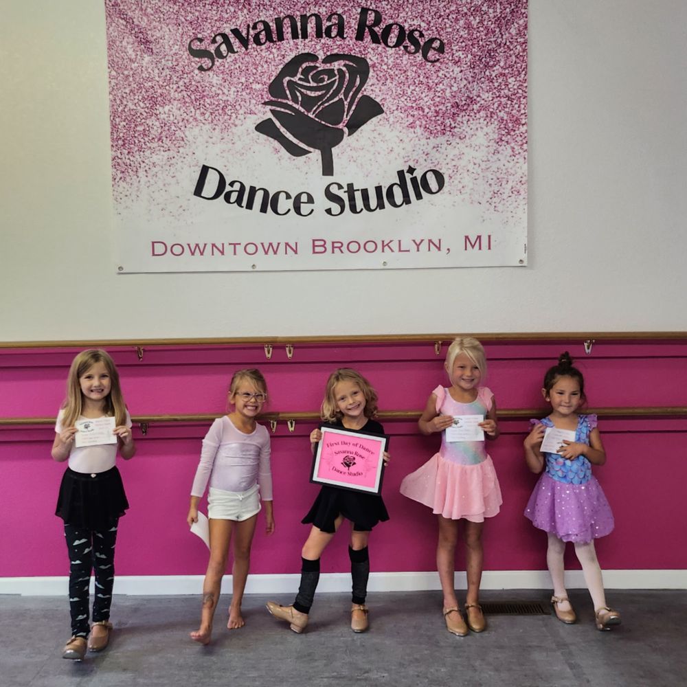 Savanna Rose Dance Studio is located in Downtown Brooklyn, Mi. We offer classes for children ages 2.5+ through adults. Our mission is to "Empower and Inspire Dancers To Grow In Confidence, Integrity, and Their Passion for Dance." We fulfill this mission through our classes, performances, and events at the studio. Our dance season runs Sept-May. We offer classes in Creative Dance, Kids Combo, Ballet, Jazz, Tap, Hip hop, Musical Theatre, Lyrical, Contemporary, Pointe and More. Our dance studio is a member of Dance Masters of America, and Dance Masters of Michigan. We are also the home of the Distinguished Young Women of the Irish Hills Scholarship Program. Savanna Rose Dance Studio - "Where It's Always A Dance Party!"