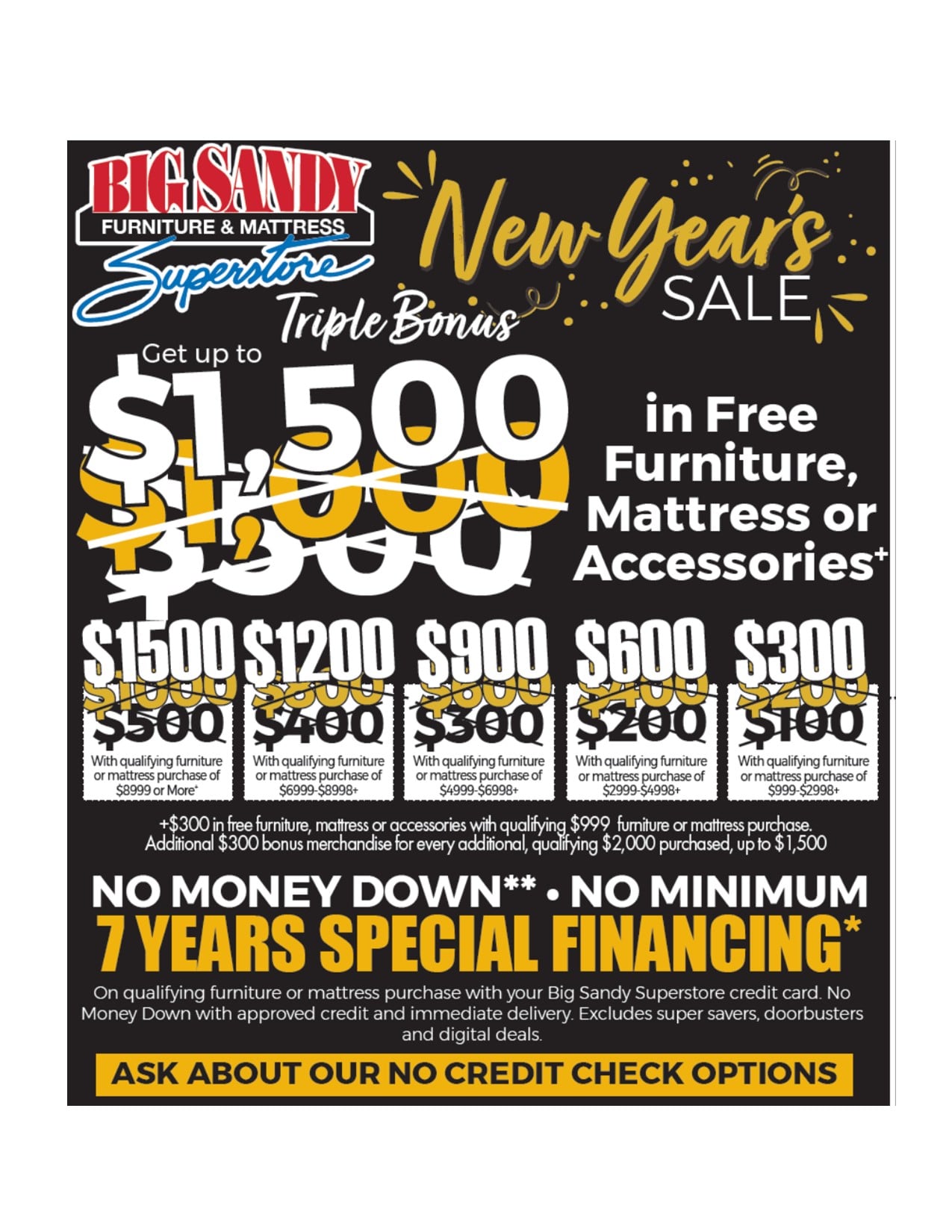 Drop on by your local Cadillac Big Sandy Superstore and discover furniture for the living room, dining room, bedroom, and home office! Experience the Big Sandy Superstore difference when you shop and compare America's top 5 mattress brands, plus Purple and Nectar. From no credit to no interest, we proudly provide a wide variety of financing and low-payment options that make styling your dream home affordable. Our great deals aren't the only easy thing to find! We're conveniently located right off Boon Road and Highway 131, between McDonald's and Jet's Pizza in north Wexford County. Come give our employee-owned superstore a visit and explore our options today!