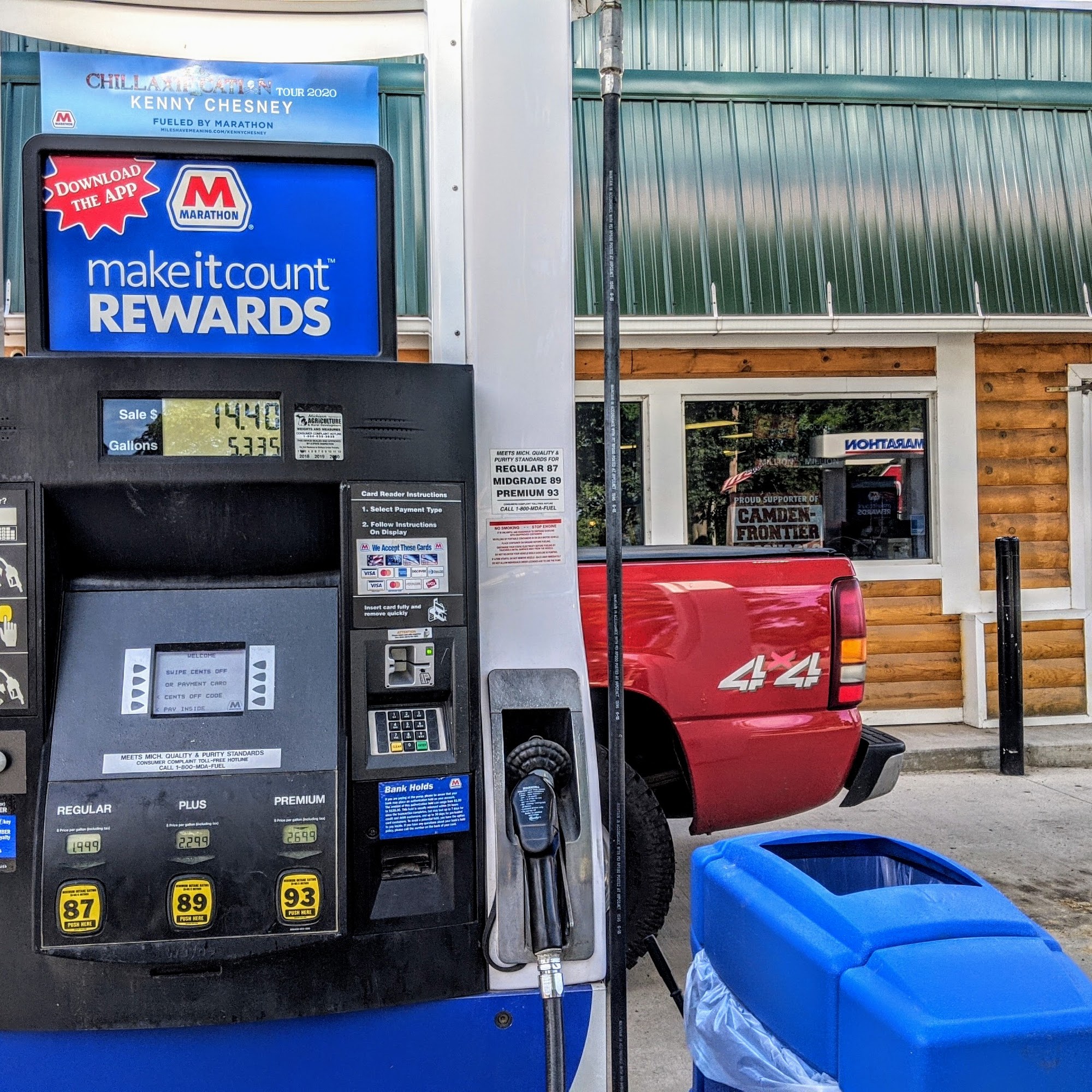 Marathon is a small local gas station that offers a full selection of typical gas station food and convenience items. The staff are generally friendly and the bathrooms are kept clean. It is a convenient stop for residents, especially since it carries unique products like Detroit popcorn mix. However, the store can sometimes be short on stock, with empty shelves and inconsistent availability of hot and cold food. The location is remote, which may lead to unpleasant odors like horse manure, especially during summer. Some customers have experienced rude service and food safety concerns, such as food poisoning incidents. Despite these issues, it remains a go-to spot for many in the area.