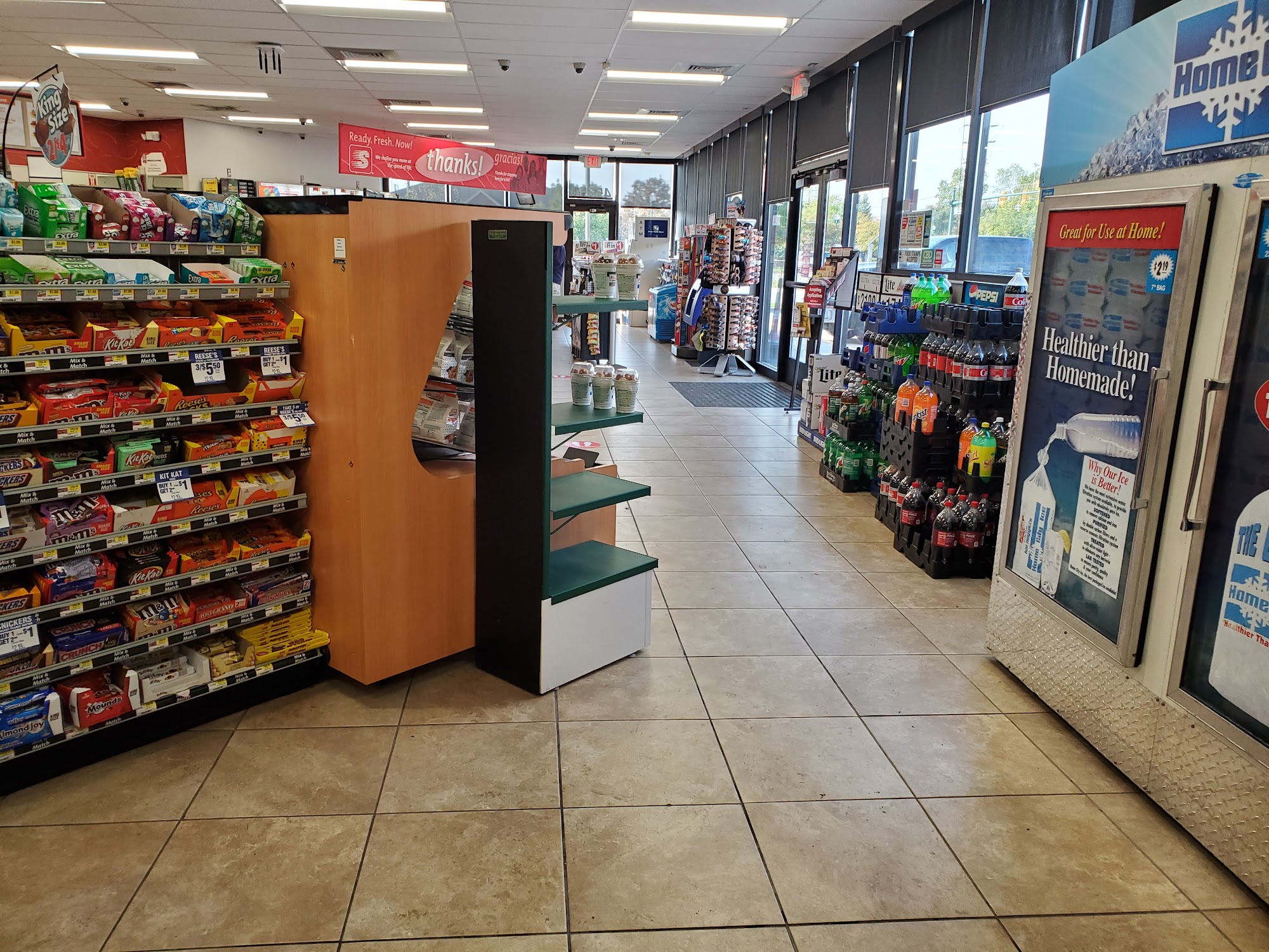 The gas was cheap for speedway. But it's also connected with 7-Eleven. So prices for merchandise are very expensive. I bought a gallon of windshield wiper fluid. It cost $2 more than the gas cost a gallon .