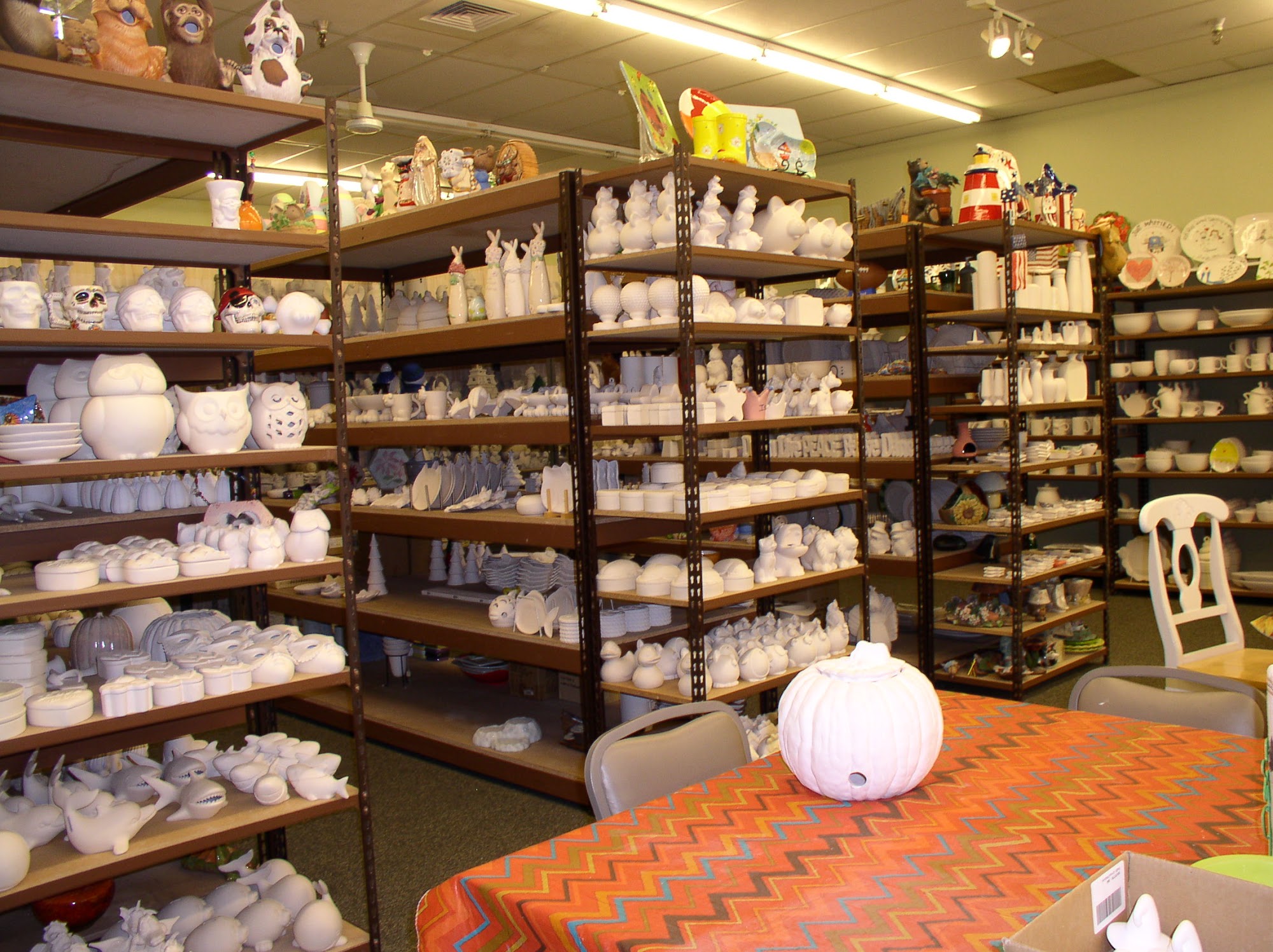 My granddaughter and I spent an afternoon here. They have a wonderful selection of ceramic- ware and all the glazes and brushes you'll need. We had a blast!