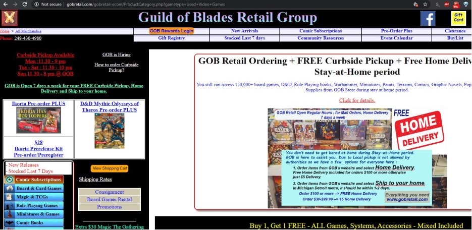 GOB Retail is Michigan's Largest Game and Comic Store with more than 150,000 games, comics and pop culture collectibles. Nation's largest selection of board and card games, 7700+ role playing games and accessories, full line of Dungeons & Dragons. Huge selection of dice! Warhammer 40K, Magic the Gathering & Pokémon. 90,000+ comics new and used. Free comic subscription system with 24/7 online access. 9000+ Graphic Novels & over 1200 complete comic bundles. Funko Pops figures. Large open game room with seating for 100+ players and weekly events. Board game library free to play in the store or rent and take home. Website with real-time inventory with online ordering with local pickup option. Magic singles with custom kiosk. Comic kiosk. More..