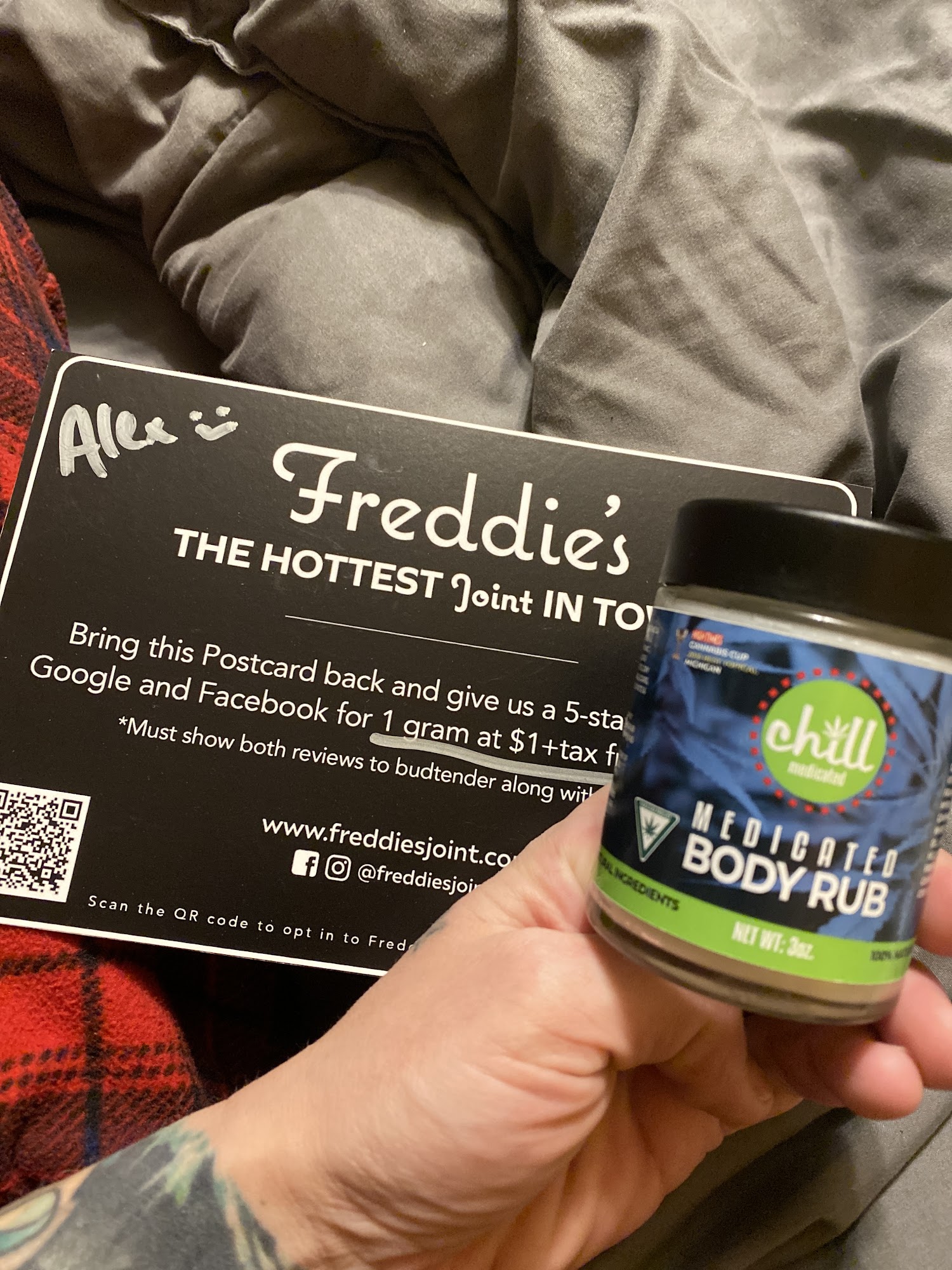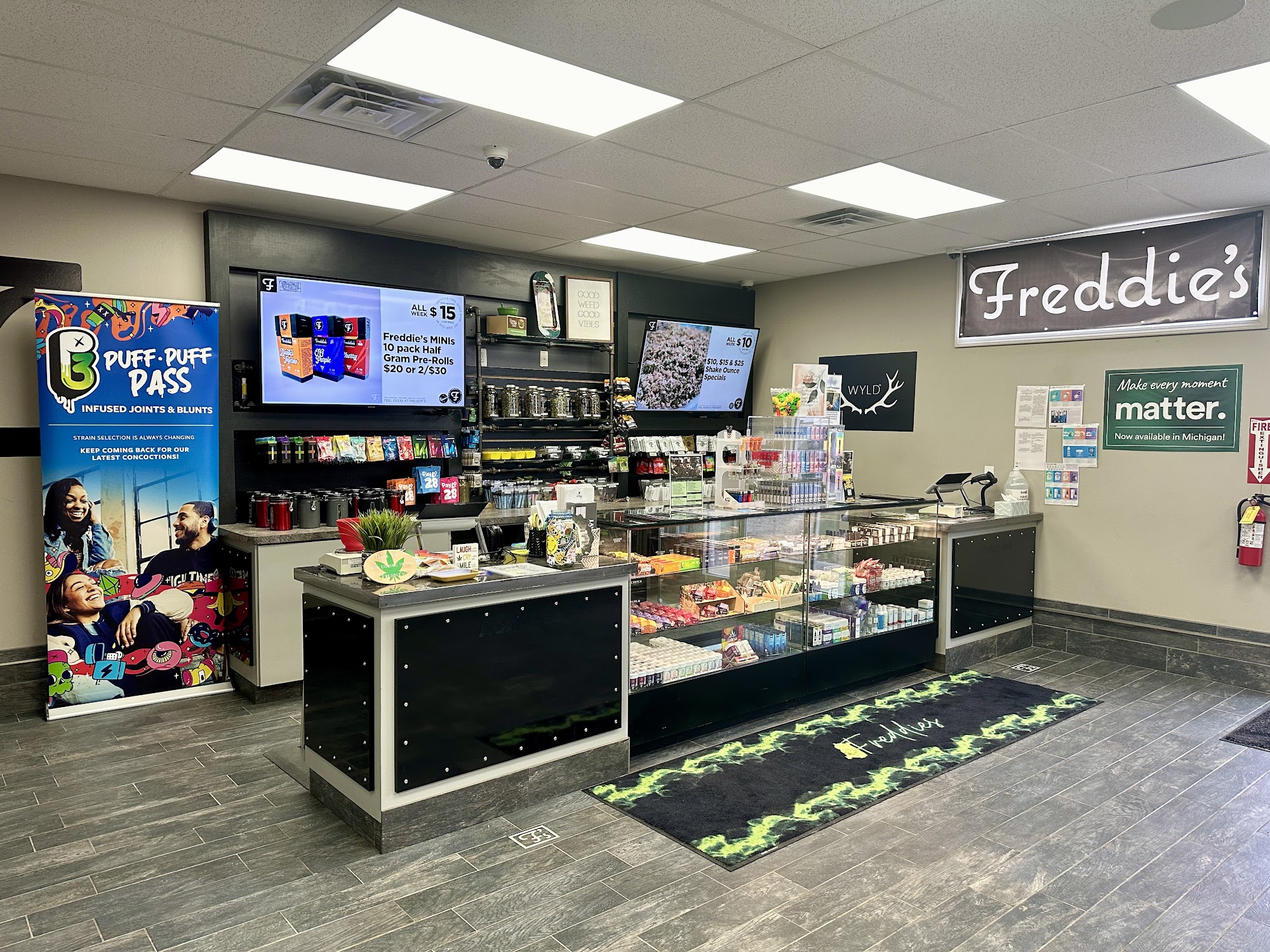 Freddie's Joint is a cannabis outlet with the lowest prices in town on a wide and competitively priced selection of top quality flower, prerolls, vapes, edibles, and more. We provide the best service, the best value, and the most passionate budtenders. When you walk into our joint, you’ll know that it’s not all about business here – it’s about the people. If you don't leave happy, we're not happy. Feel Good at Freddie's Joint. 21+.