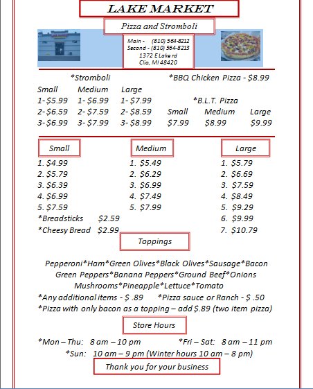 The pizza is good and they have warm snacks like Bosco sticks at the counter.