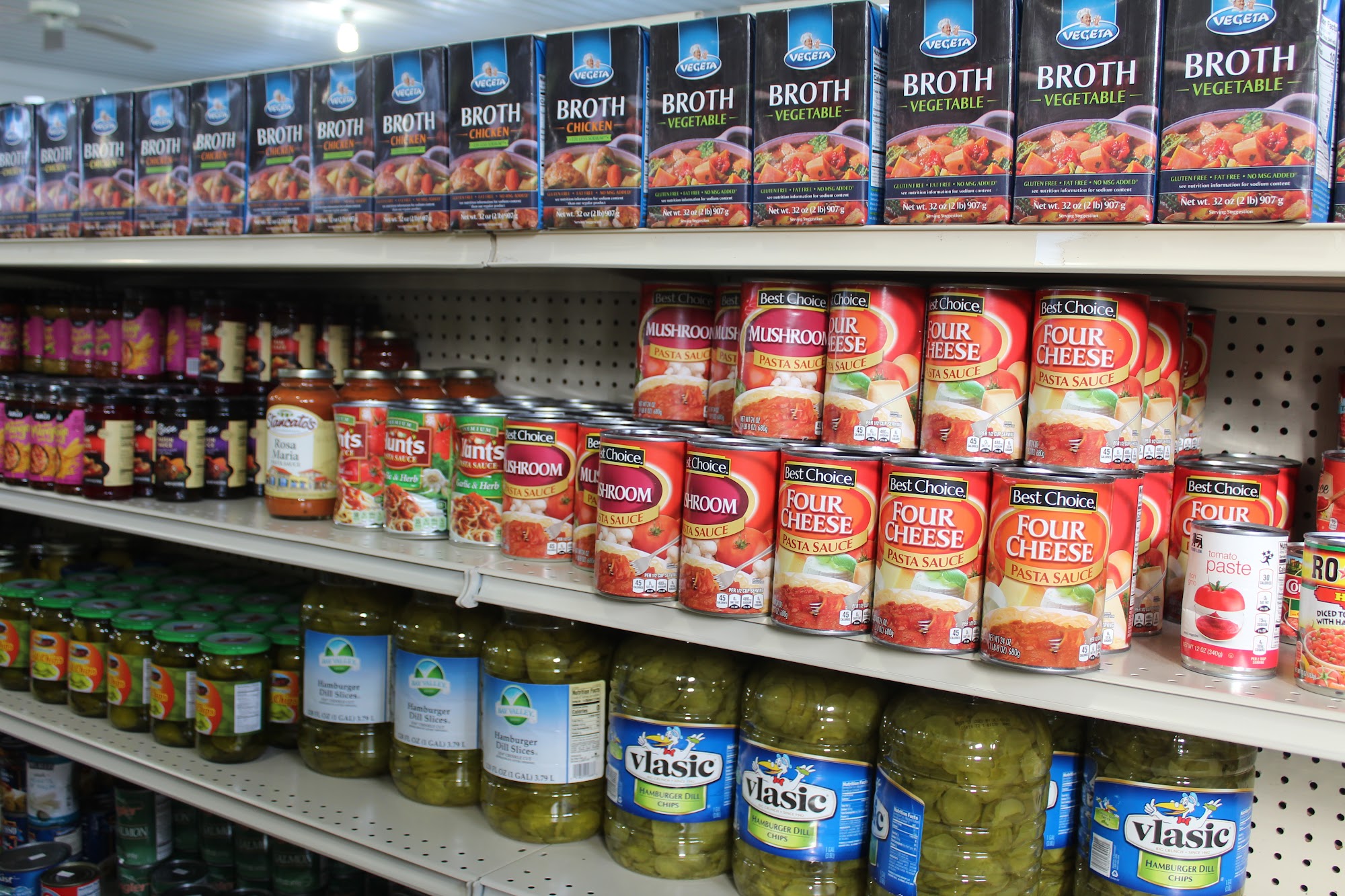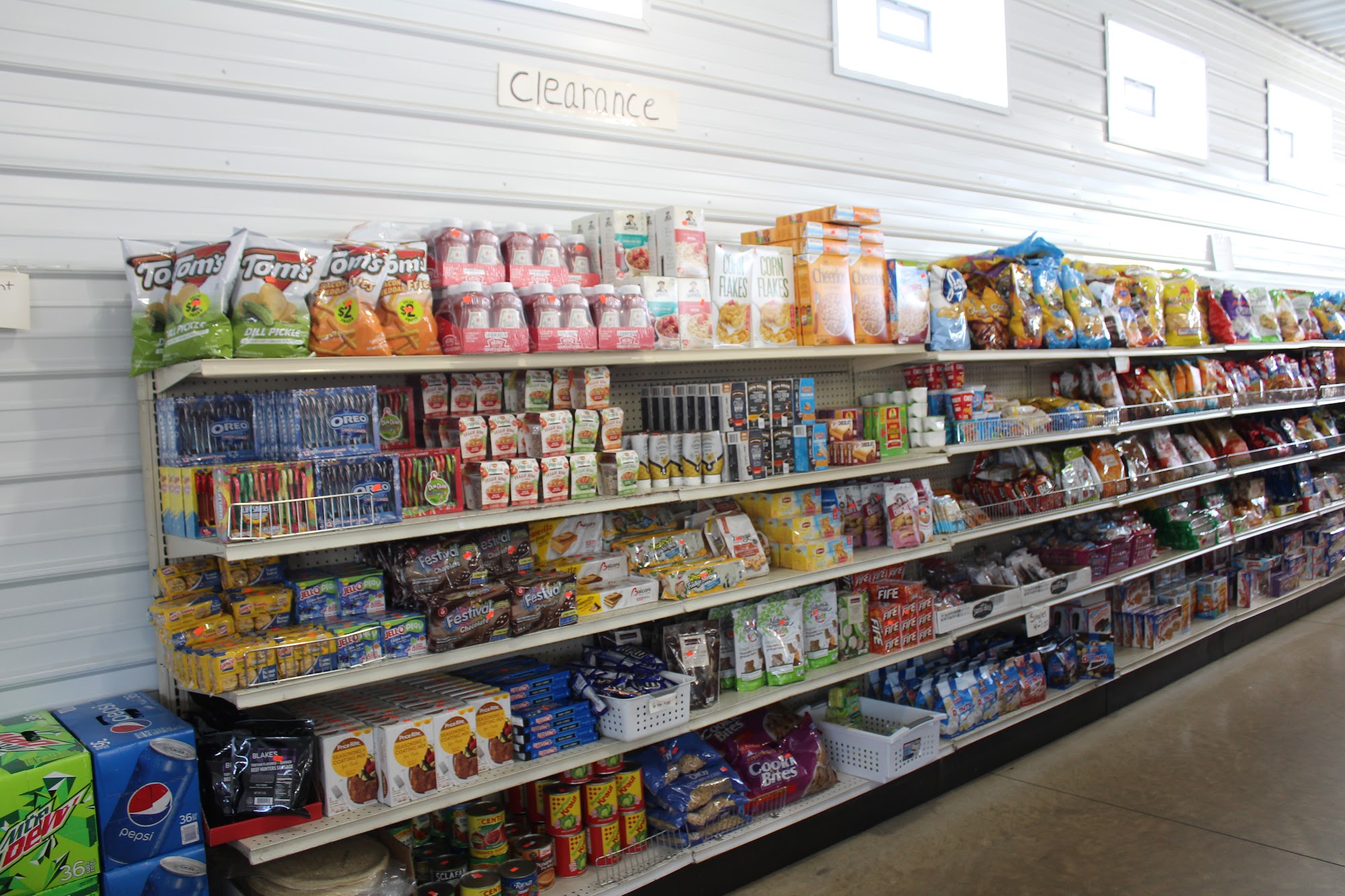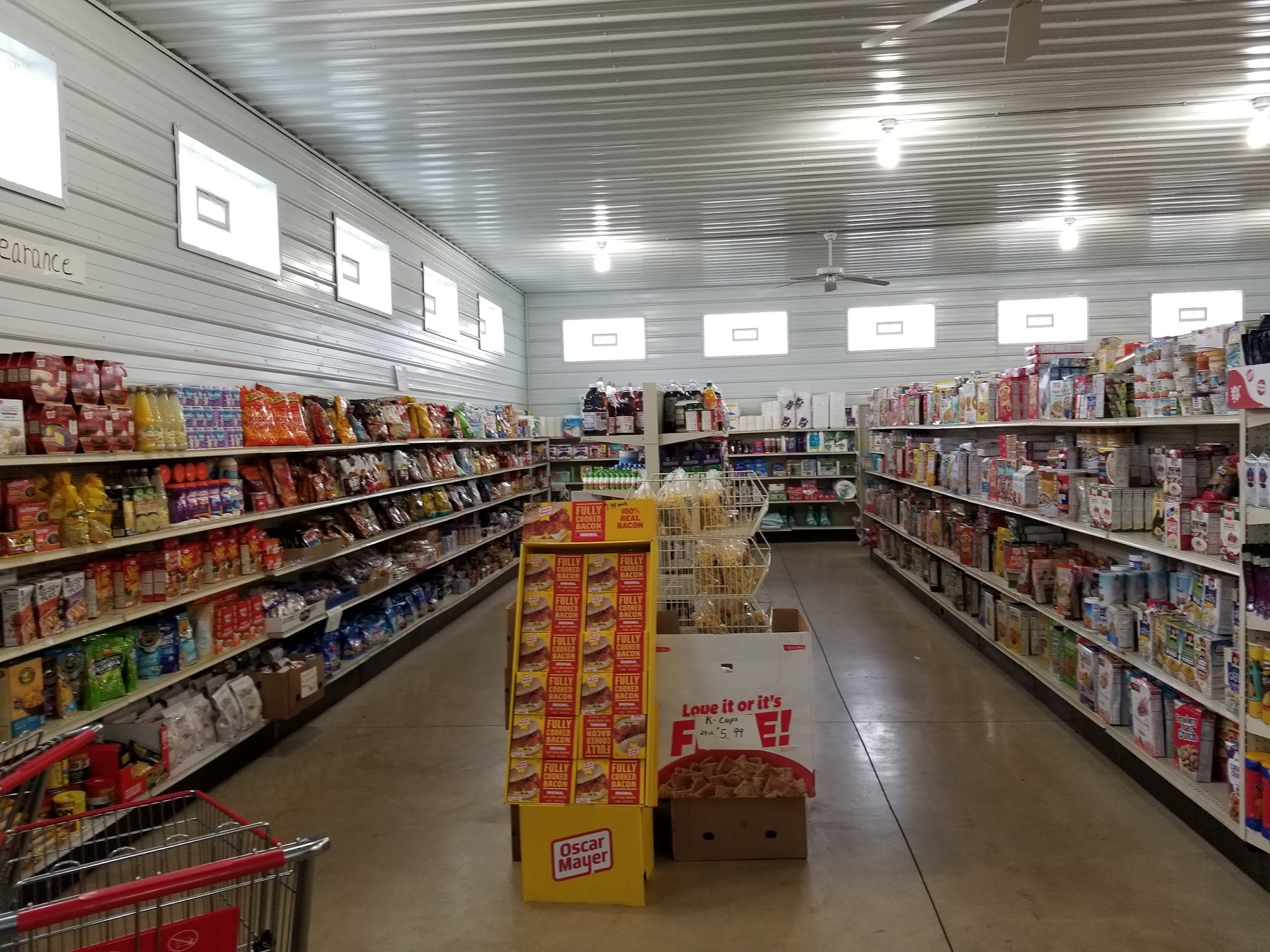 Sunrise Discount Grocery Store is a very clean, well-lit Amish-run store with very cheap prices and amazing deals. It is a small discount store and a little gem in the country with a nice parking area. Shoppers can find a small but awesome frozen section, a health and beauty aisle, baking items, dog food, snacks, drinks, and cleaning products. The staff is very friendly. Customers note they must watch the dates, as many items are expired and boxes or cans have damage. While some prices are higher than Walmart, many items are really cheap, cutting a grocery bill in half.
