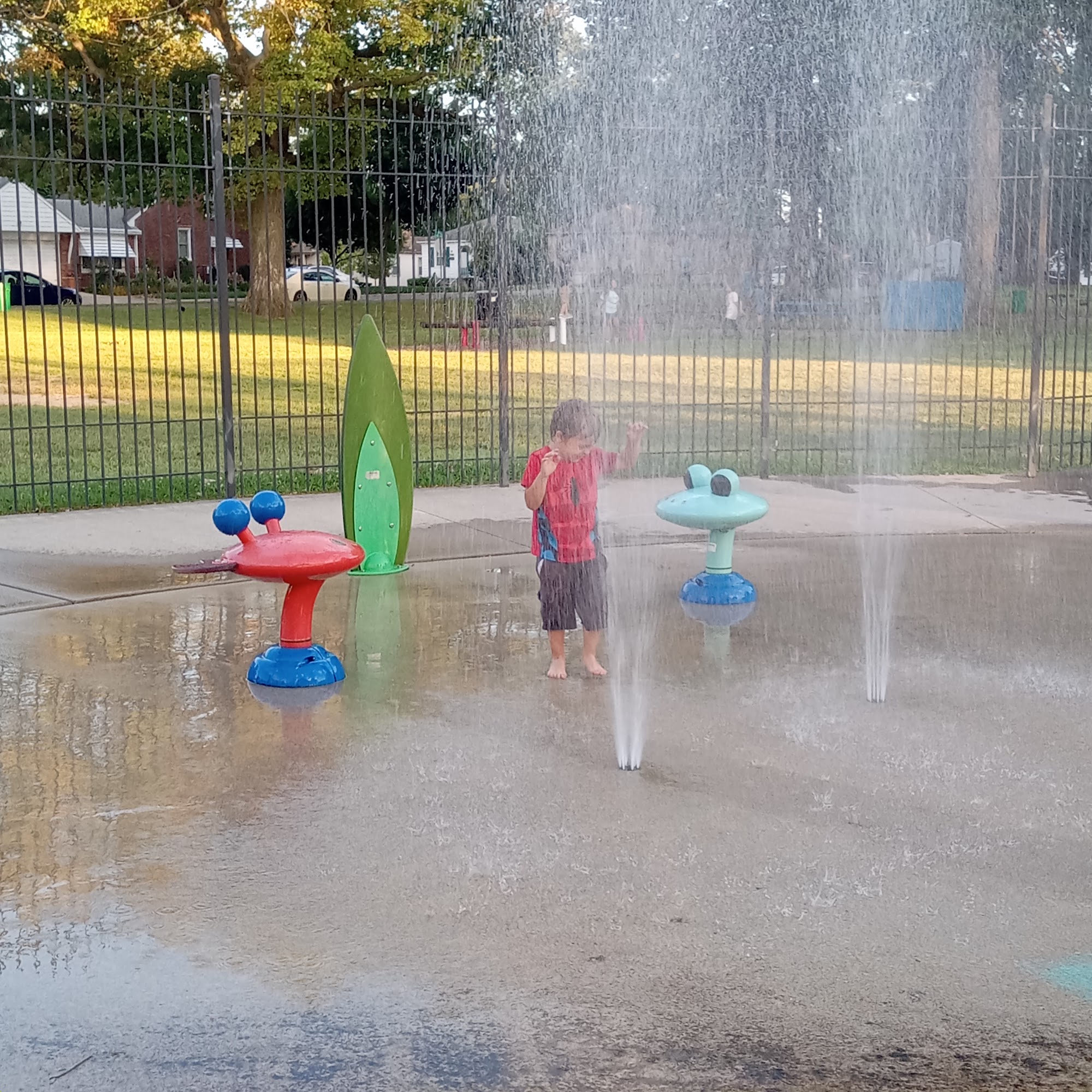 Crowley Park is a great park with a new and amazing playground. The playground is in really good condition with a great mixture of structures, slides, and swings for kids of all ages. It is fenced and gated for safety. The park also includes a free splash pad, which is enclosed. There is a good selection of features, with plenty of shaded picnic tables and lots of seating available. The park has a walking path around the perimeter and lots of trash cans. It can get pretty busy but is big enough not to feel crowded. The only noted downside is the bathroom situation, with only porta potties available and no handicap porta potty, which can be a little inconvenient. The parking lot can also be a little hard to find. Overall, it is a really nice park and a great place to enjoy on a hot day.