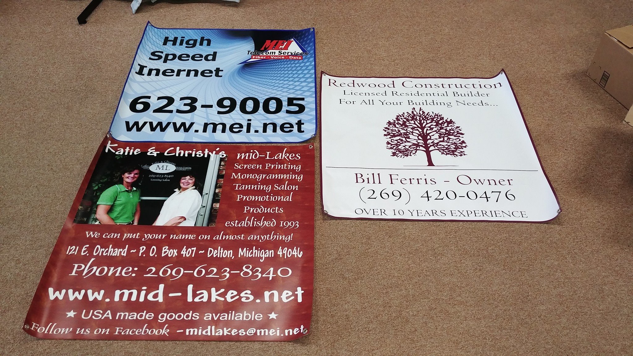 Mid-Lakes Screen Printing is a locally-owned business established 25 years ago. It provides custom screen printing and monogramming, and also has a tanning salon. It carries over 75,000 promotional products including trophies, plaques, business cards, and souvenirs. The owners are very nice, helpful, and provide great customer service, often going above and beyond. Customers report excellent workmanship and are very very happy, highly recommending it as their go-to place. Their motto is “We can put your name on almost anything!”