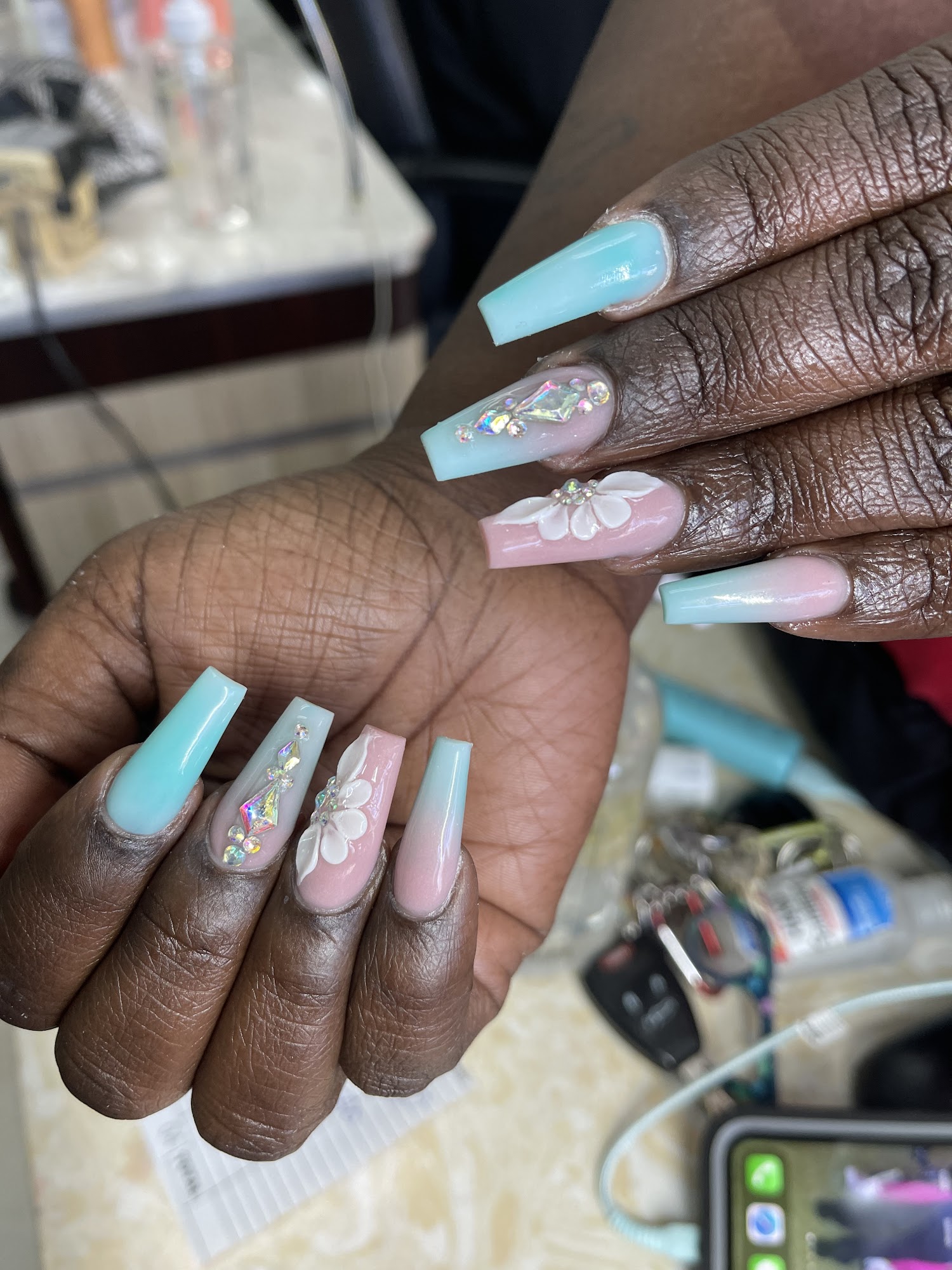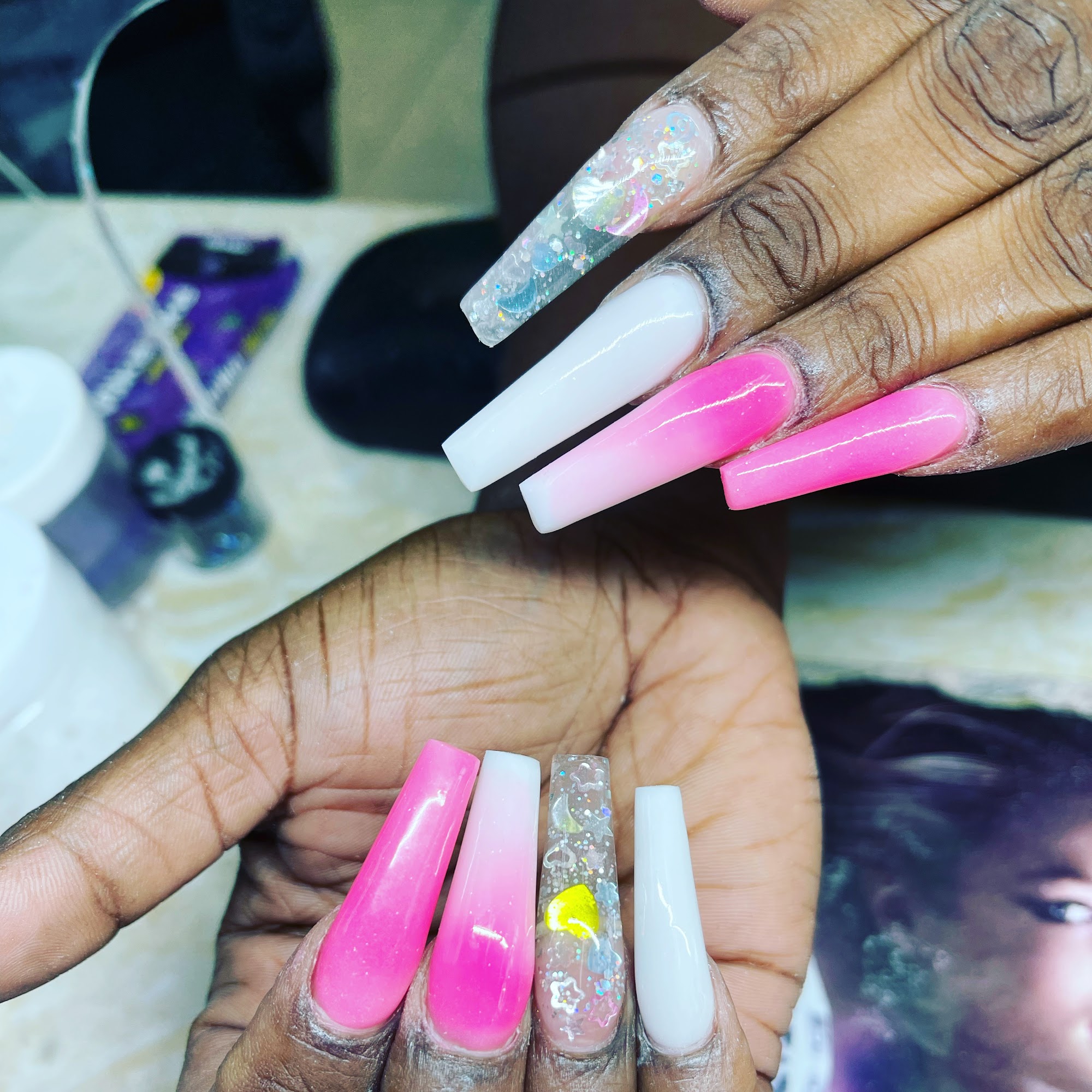 Lee is the owner.. he sits @ the desk HEs absolutely the best nail tech in the city…. I absolutely follow him wherever he goes! His customer service is unmatched! The pricing is very Reasonable! Come check him out ‼️