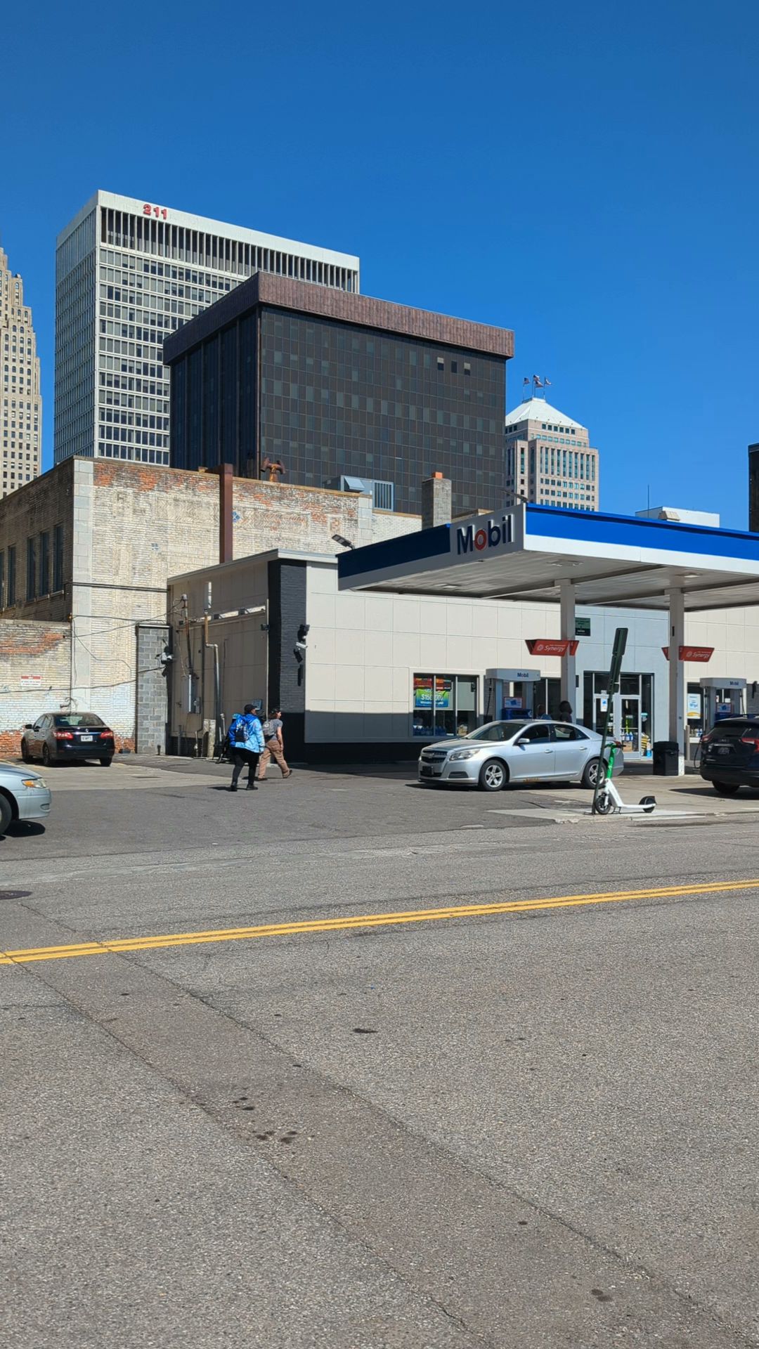 Mobil is a stocked gas station with items beyond gasoline, such as types of coffees, hot dogs, candies, and chips. It is packed with a variety of snacks and offers cigarettes at a fair price. The station has a stock of juices and pop, and customer service is awesome. Employees greet each customer with a smile and are helpful. It is open till midnight and renovated, making it favorite downtown spot.