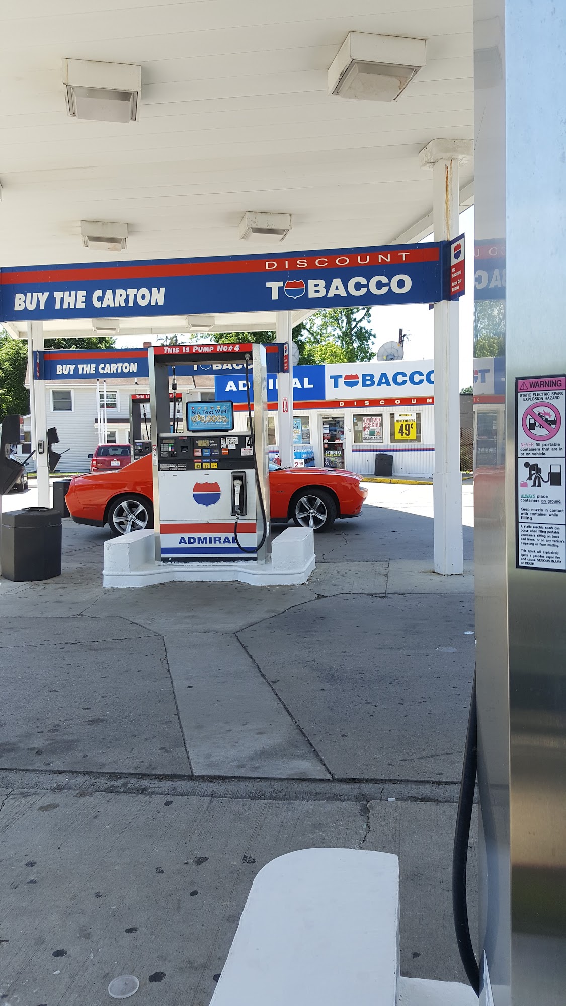 Small gas station. While at pump couldn't see screen for Card reader. So had to go inside. Took me a few minutes to figure out how to get the gas pump to work. It was small little buttons overtop what I thought were bigger buttons but were not. Stopped in because the gas was cheap. Cashier was nice.