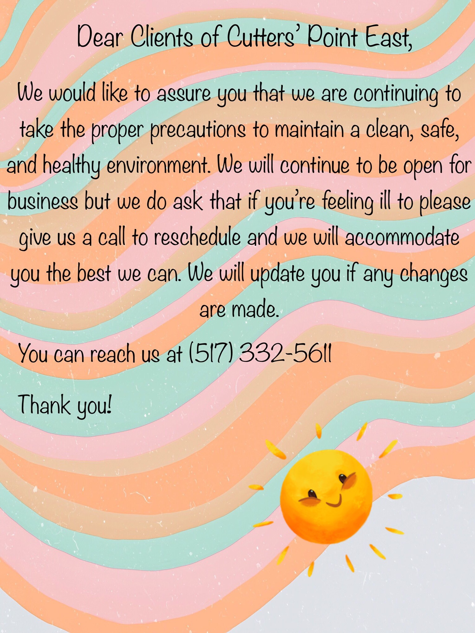 I had my haircut there yesterday, it was wonderful. Everyone was very nice. Very reasonably priced. I got the best haircut that I have had in years. If you are looking for a new stylist, try Cutter's Point!