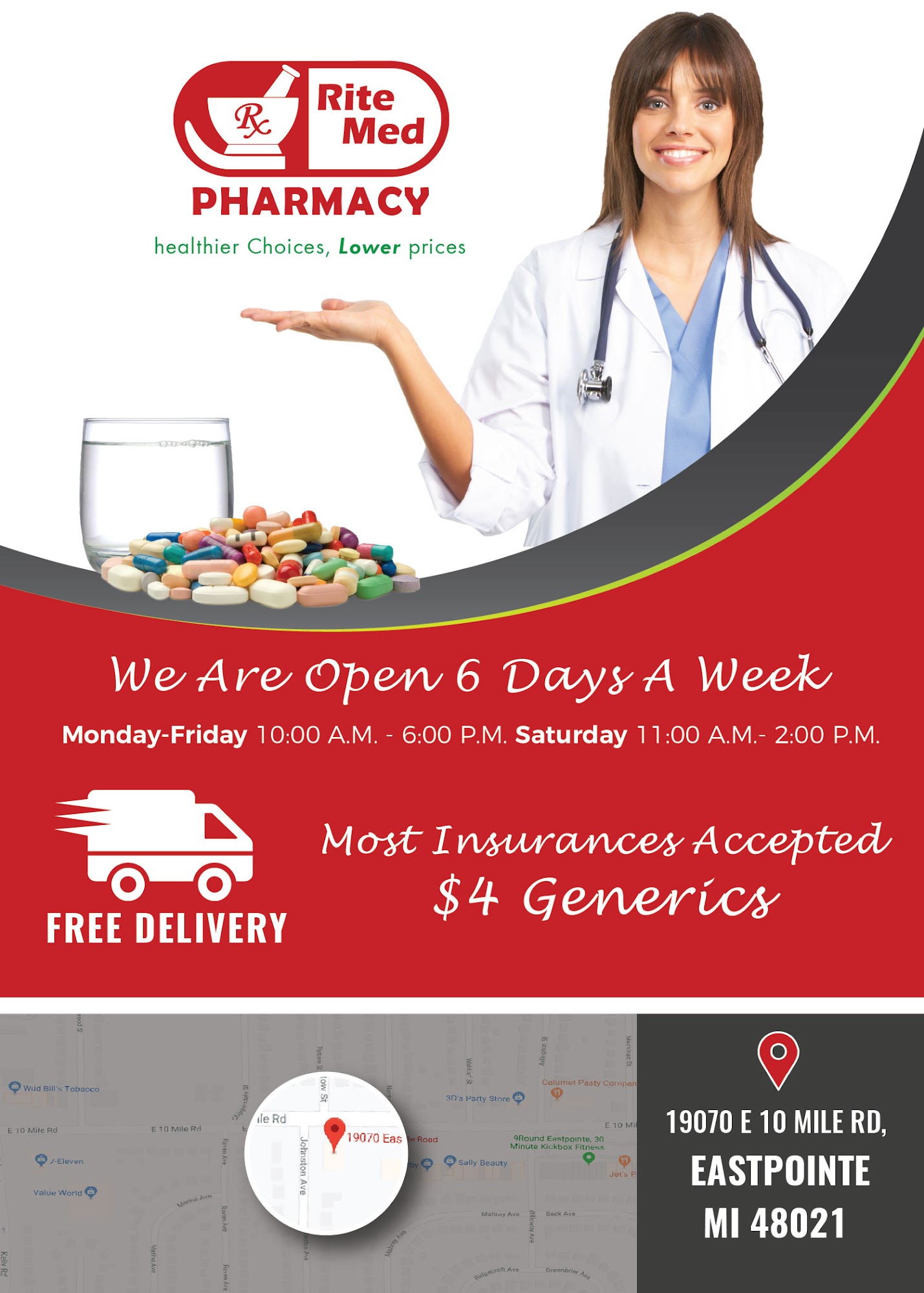 RiteMed Pharmacy in Eastpointe, Michigan is noted for its great customer service, helpful and friendly pharmacist and staff, and outstanding service and attention. The knowledgeable staff provides fast and convenient service, offering personalized care and exceptional service. They are willing to go above and beyond, demonstrating great knowledge and communication about prescriptions. The pharmacy offers the best discounted prices and free home delivery. They can typically get any prescribed medication by the next day with no problems. Customers recommend this place highly, praising the staff for being very nice, extremely helpful, and showing they really care by thoroughly answering questions about medications.