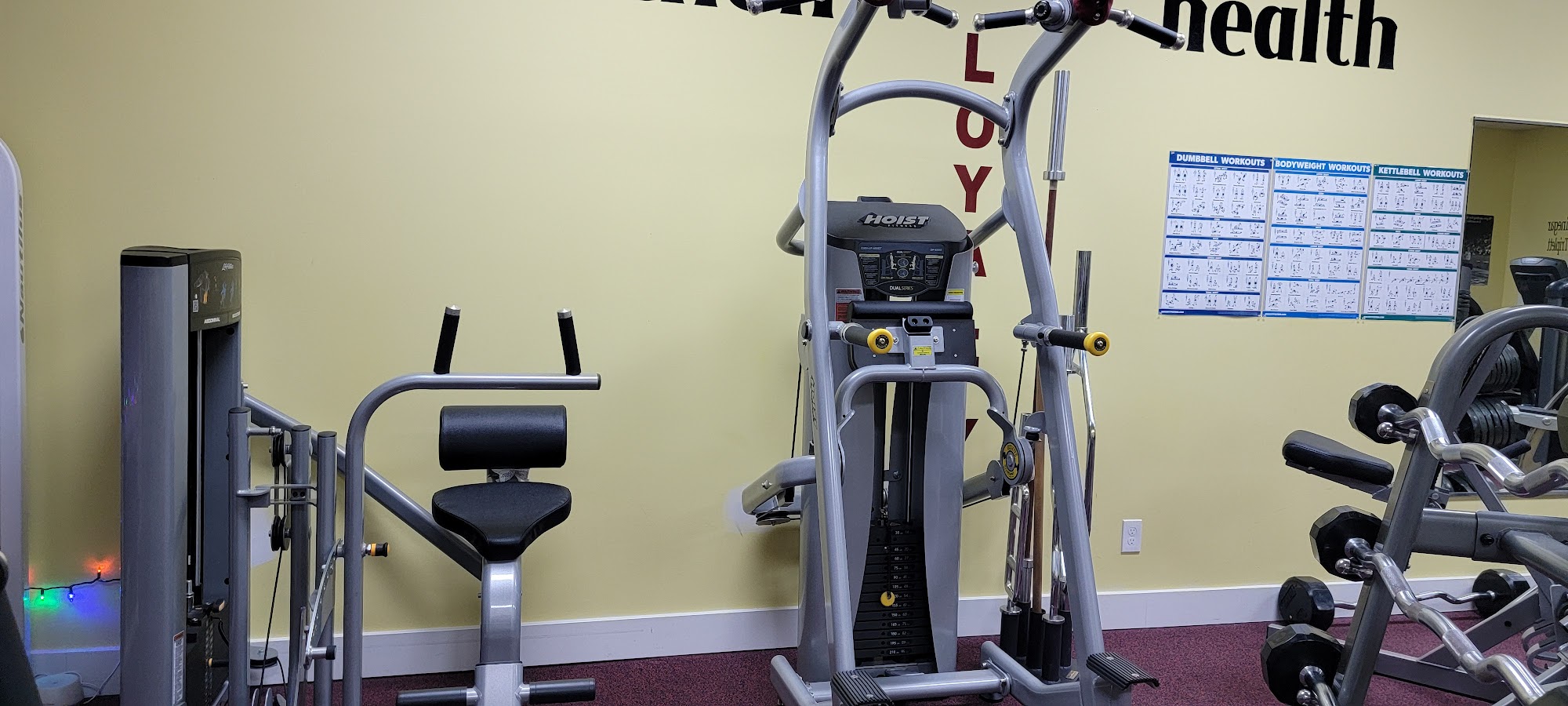 24 hour access for a good selection of exercise equipment in a clean gym.