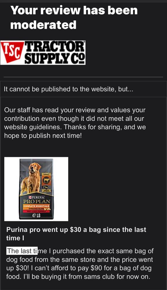 Stop to get some dog treats. I usually get some of my dog supplies at Tractor Supply. I have now visited four different locations. Pretty much all of them the same.Also, this is a very good place to pick up chicks. They're usually in the center of the store. Wah wah wah see the picture of my two topless chicks attached.