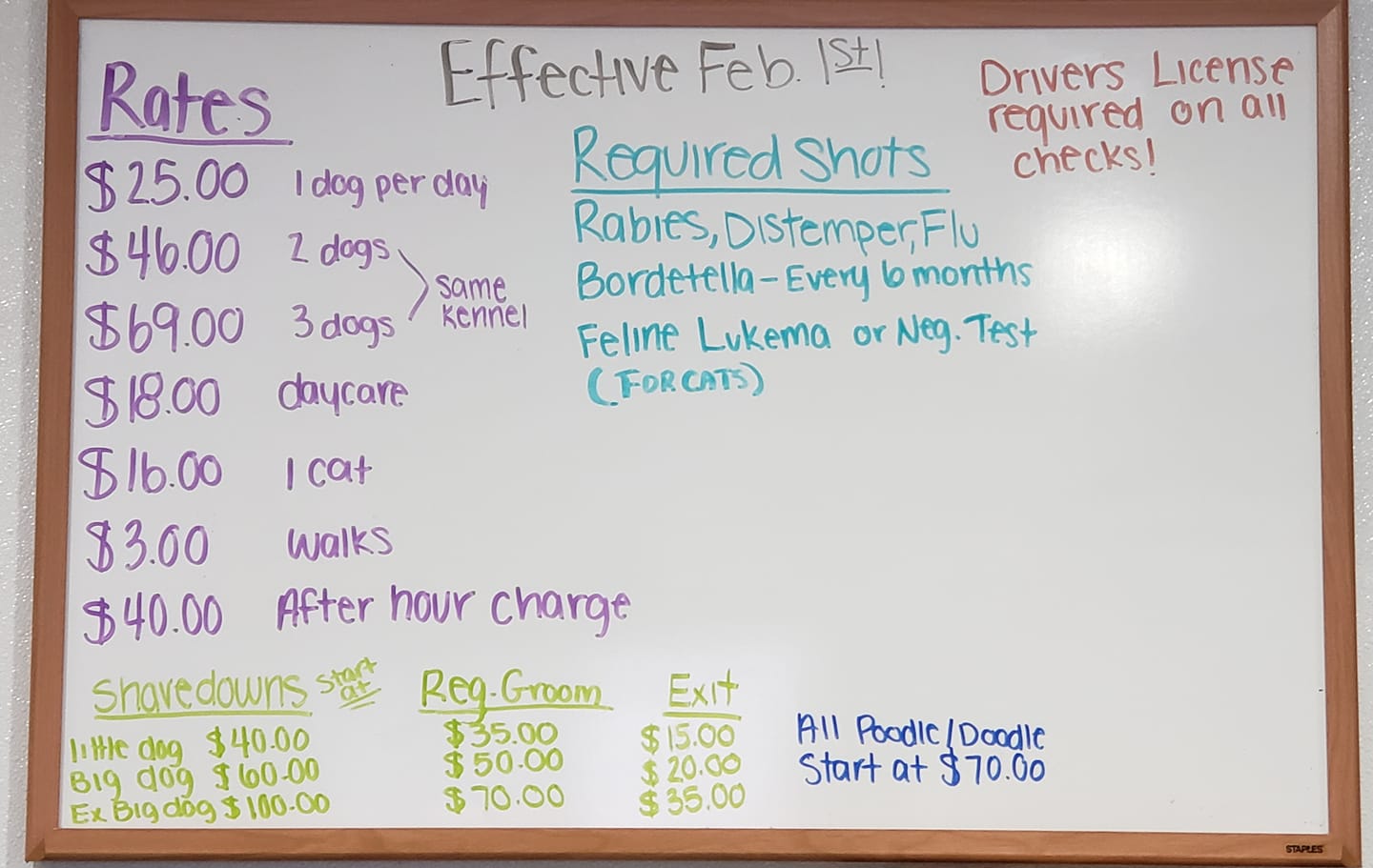 I’ve been taking my family dogs there for 20 years. It’s the only kennel I’ll ever use. It’s a great family owned place. Clean facilities and the best groomers.