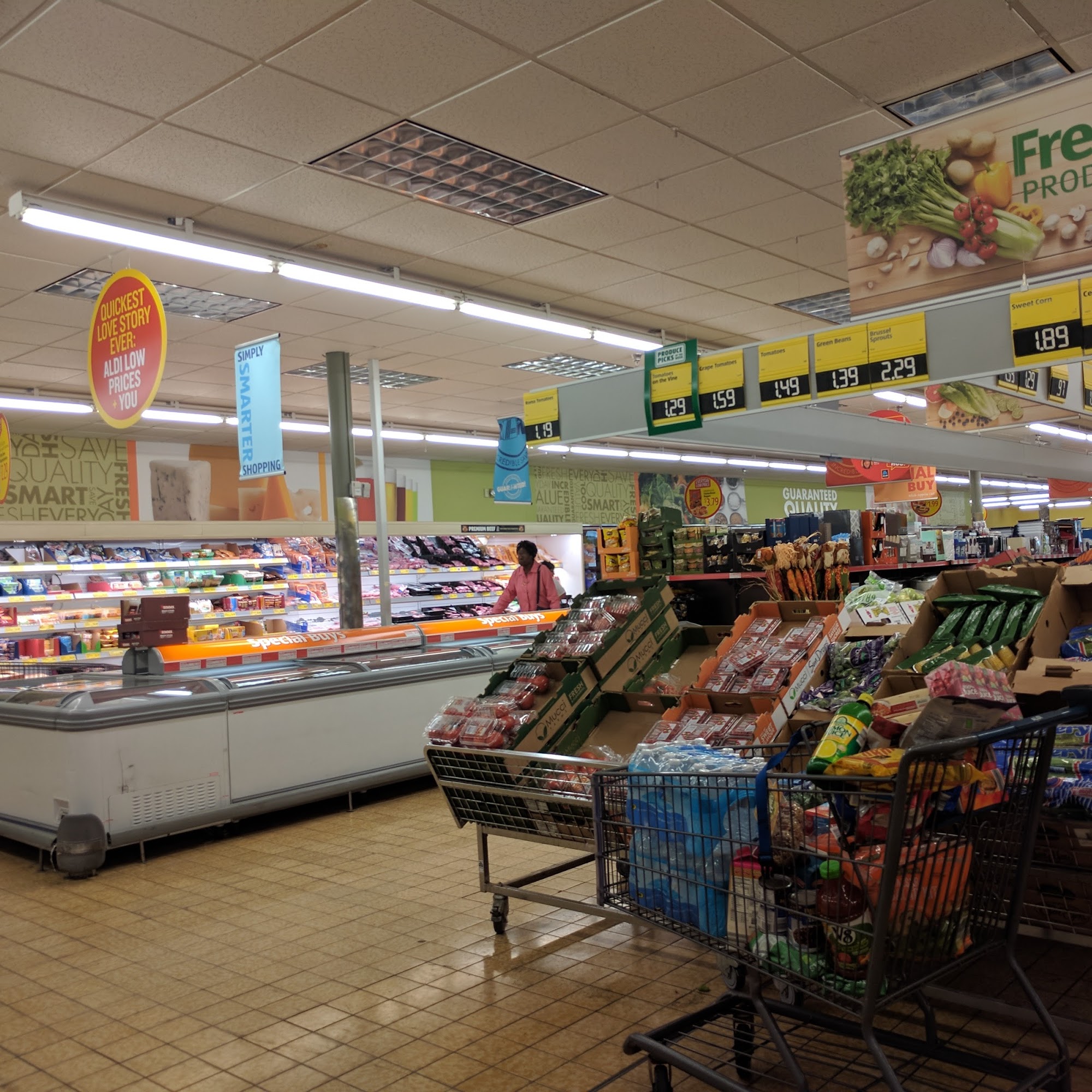 I love going to the cheese section. They have all kind of different kind of dips and sliced cheese, gourmet cheese. I like aldis