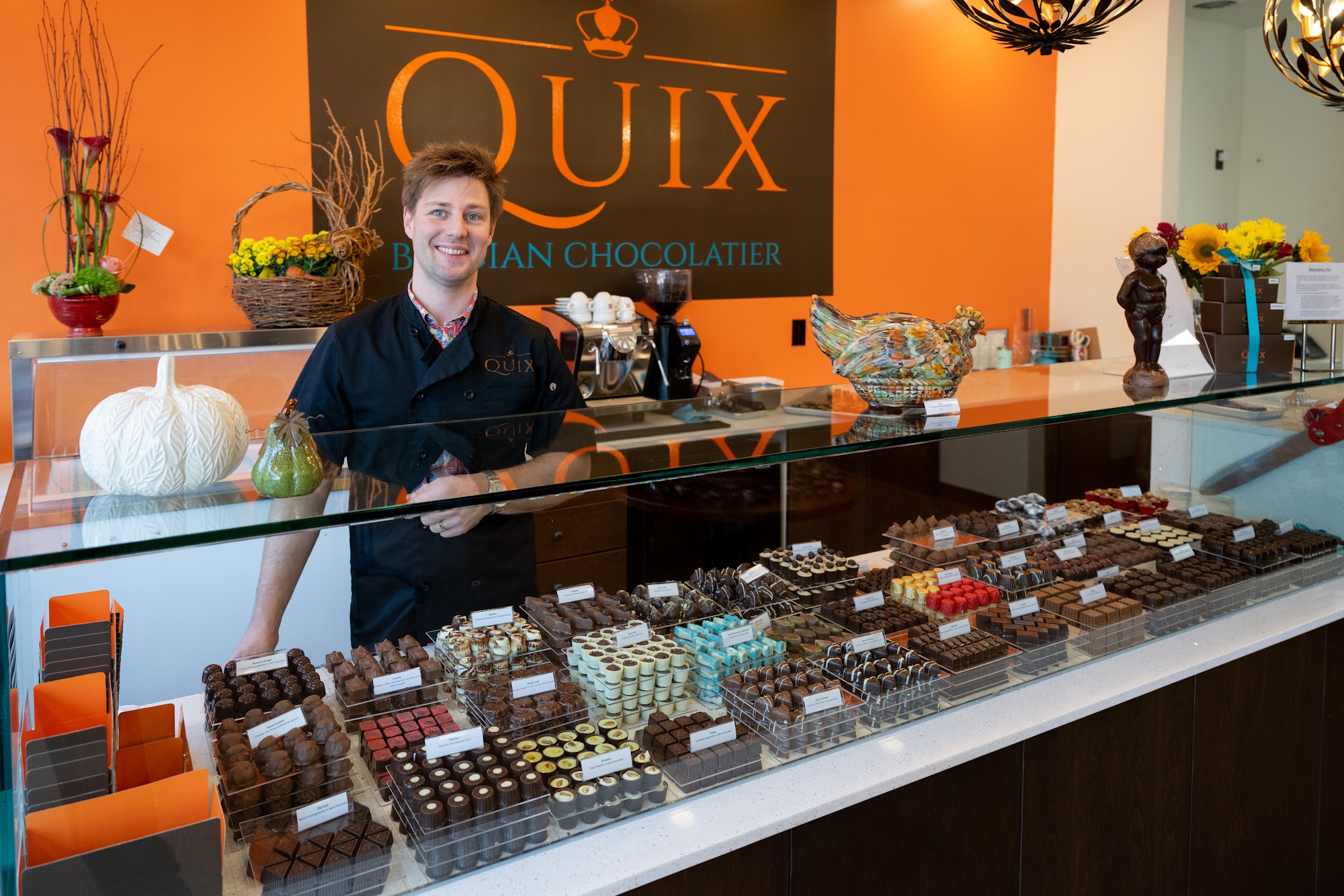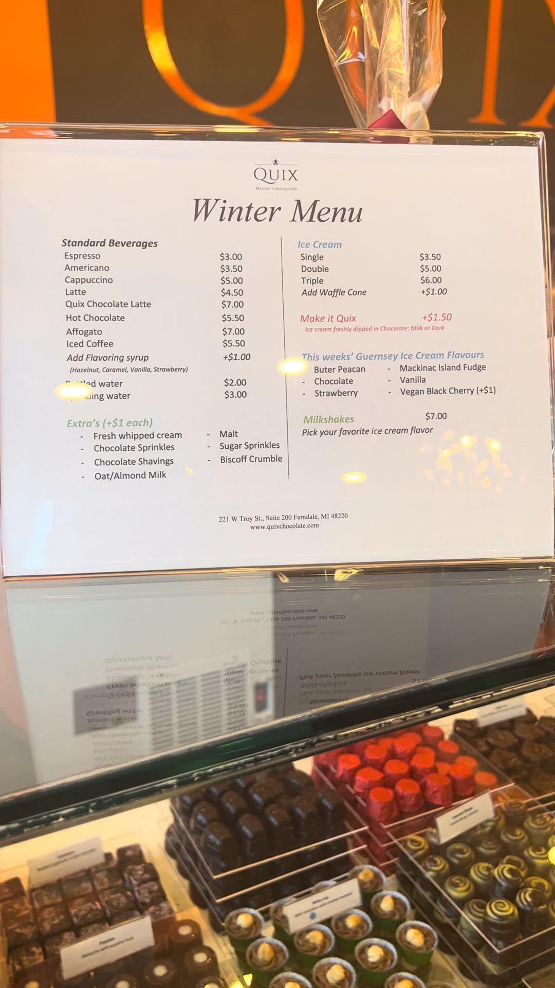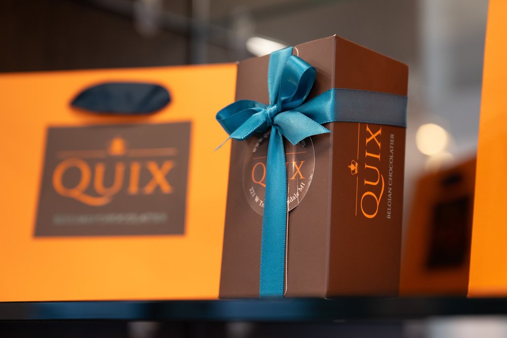 Quix Chocolate is a beautiful, fancy chocolate shop in Ferndale offering something special for chocolate lovers. The chocolate is delicious and outstanding, with tasty dairy-free dark options, plenty of milk chocolate, and delightful Belgian chocolate made in-store. Their beautiful truffle selection and treats dipped in chocolate, like dried fruits and chocolate-covered cookies, are very addicting. Many find it the best chocolate in Metro Detroit. The drinking hot chocolate is to die for, velvety, and literally melts in the mouth, an experience many have never had before. While some flavors like the caramel or blood orange may not suit every personal taste, others such as the coffee crunch or a hazelnut bar with whole nuts are really good. They also offer ice cream. The atmosphere is chill and cute, allowing customers to take their time looking at everything. The folks are extremely helpful, nice, and knowledgeable, with one associate offering the history of the store. Customers can look through the glass to see the handmade chocolate being made with premium ingredients. The beautiful, delicious boxes of chocolates are perfect for impressive gifts, with excellent taste and presentation. Prices are a little high but worth it for this tiny piece of heaven.
