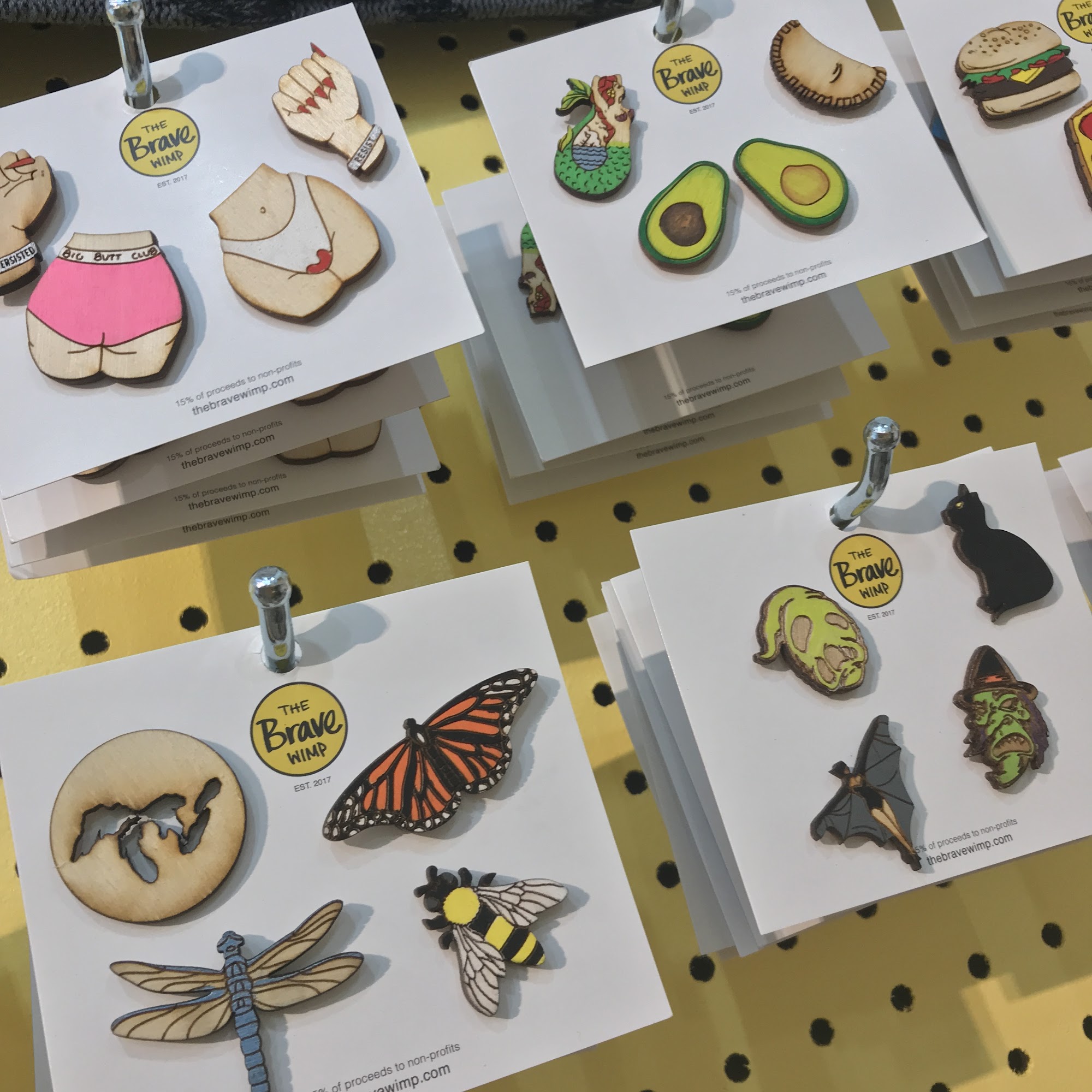 Love Brave Wimp at The Rust Belt and downtown Detroit! Such unique and high quality products that make great gifts and personal treats. It’s my first stop for stickers, pins, and earrings!!