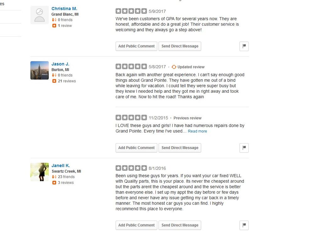 Grand Pointe Automotive has the most informative, kind, and helpful employees I have ever dealt with when getting auto repairs. I am very grateful to them for their help with my vehicle and their excellent communication throughout the diagnostic/repair process.
