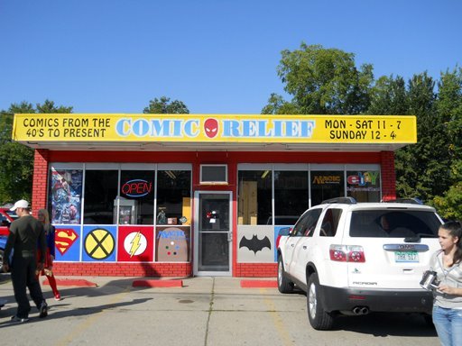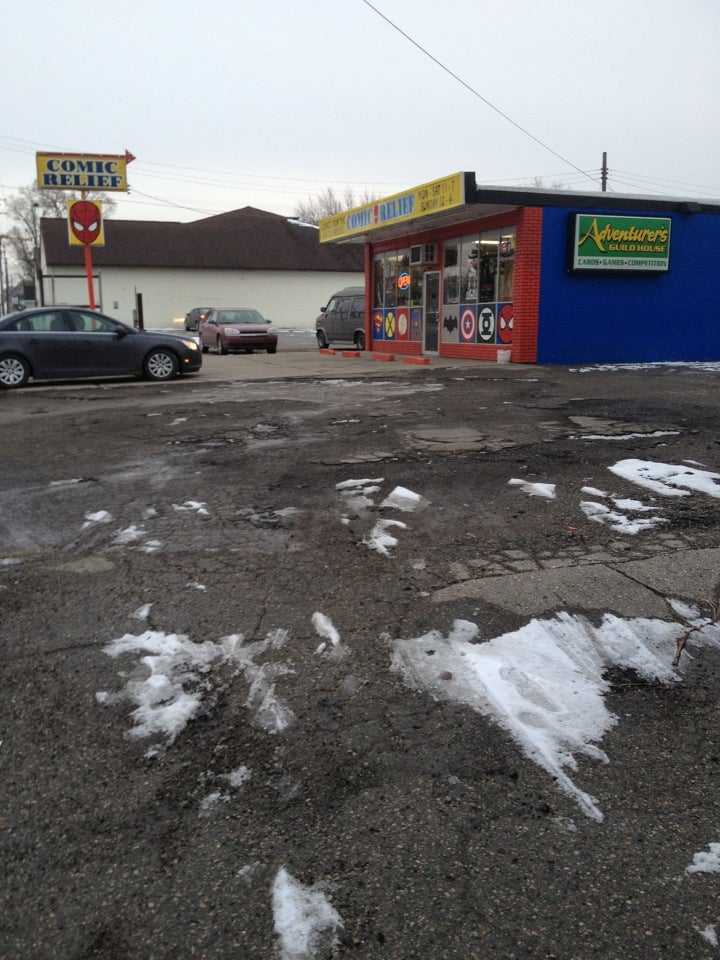 Comic Relief is a local comic book store in Flint, Michigan, known for its huge and overwhelming selection. The shop has lots of back issues, a ton of merchandise, and a good selection of collectibles like Pop figures. The layout is well done, though organization is not the store's strong suit, with tables, piles of books, and general disarray making some areas difficult to access. The store does not mind if customers move things to look, however. The staff is helpful and will assist without making customers feel like an idiot. Once learned, the filing system by cover price and age makes finding things super easy. Books are clearly priced. For those with time to dig or who know what they want, it is an awesome place with good prices. It is open when most comic stores are closed and is considered by many to be the best local comic store.