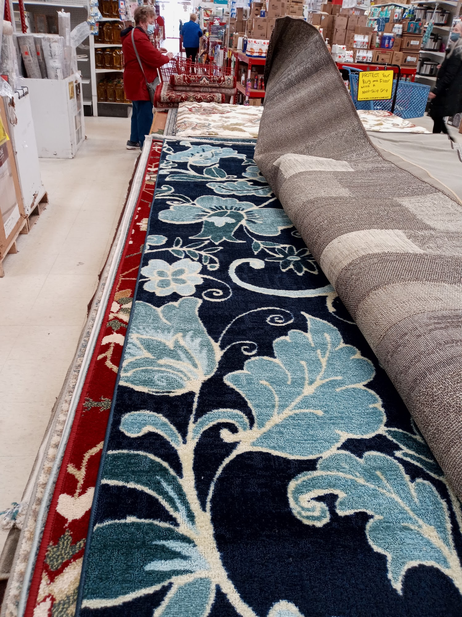 2 carpets..best price around for big area rugs that have rubber backing. Good selections The store has alot to offer so it is packed with all kinds of stuff.