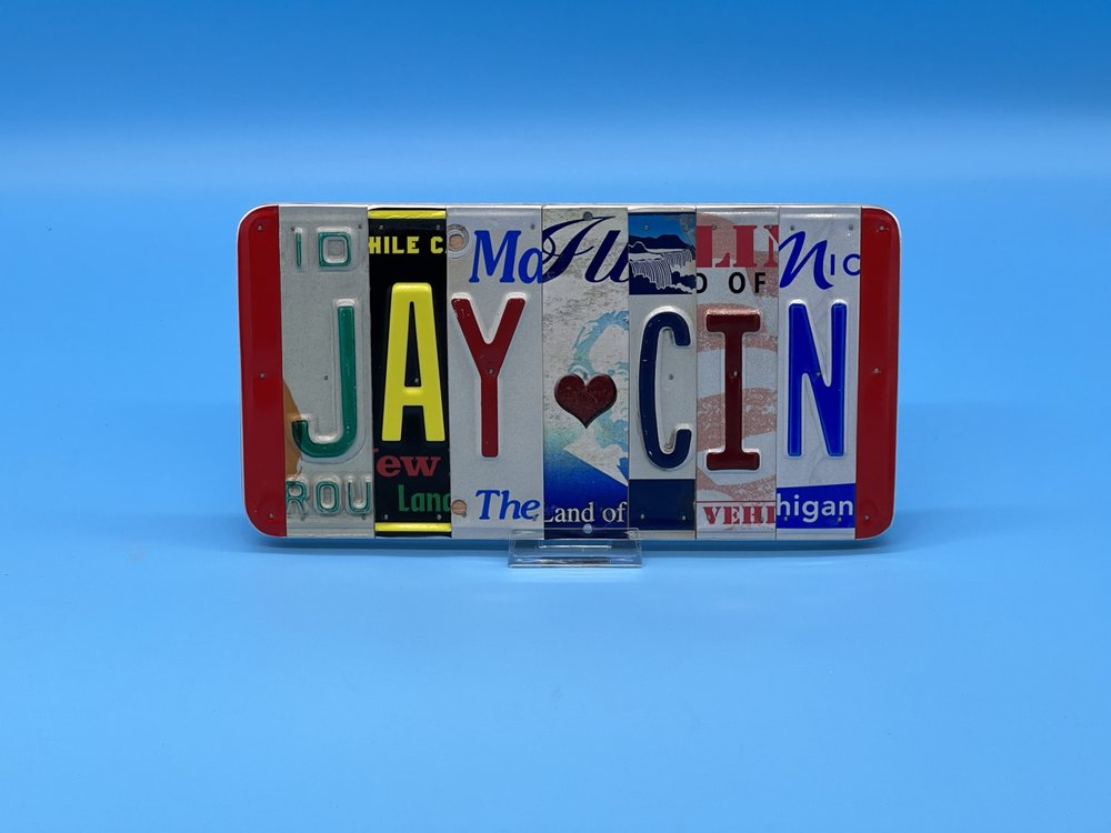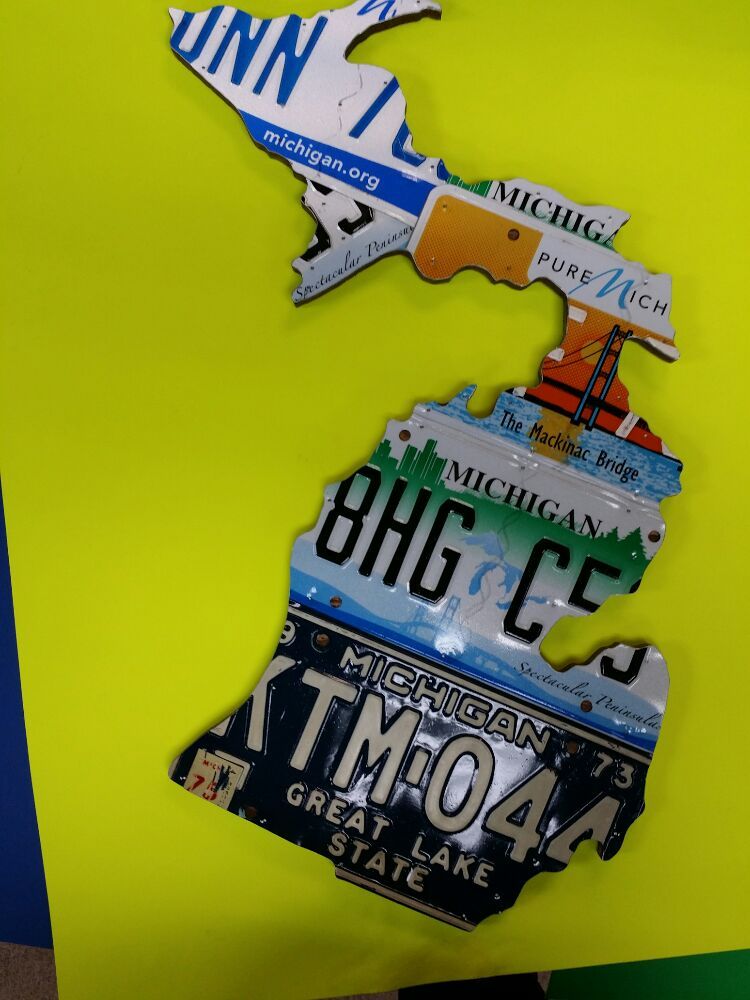 We recycled License Plates into Art. We handcraft using license plate letter into custom made hanging signs, State Maps and other home decor at our shop in Fraser, Michigan. For questions or to place an order to pickup Email [email protected]. For appointment to come to the shop Text (586)822-3774 or email [email protected]. Please visit our website to see our products and place orders. Once order is placed you will receive it in 7-10 business days in the US. Find our products in the following stores. Inspire Marketplace - Partridge Creek Mall, Clinton Twp, MI Inspire Marketplace - 12 Oaks Mall, Novi, MI Bizzy Buzz Artisan Market - Rochester, MI The Katydid - Petoskey, MI