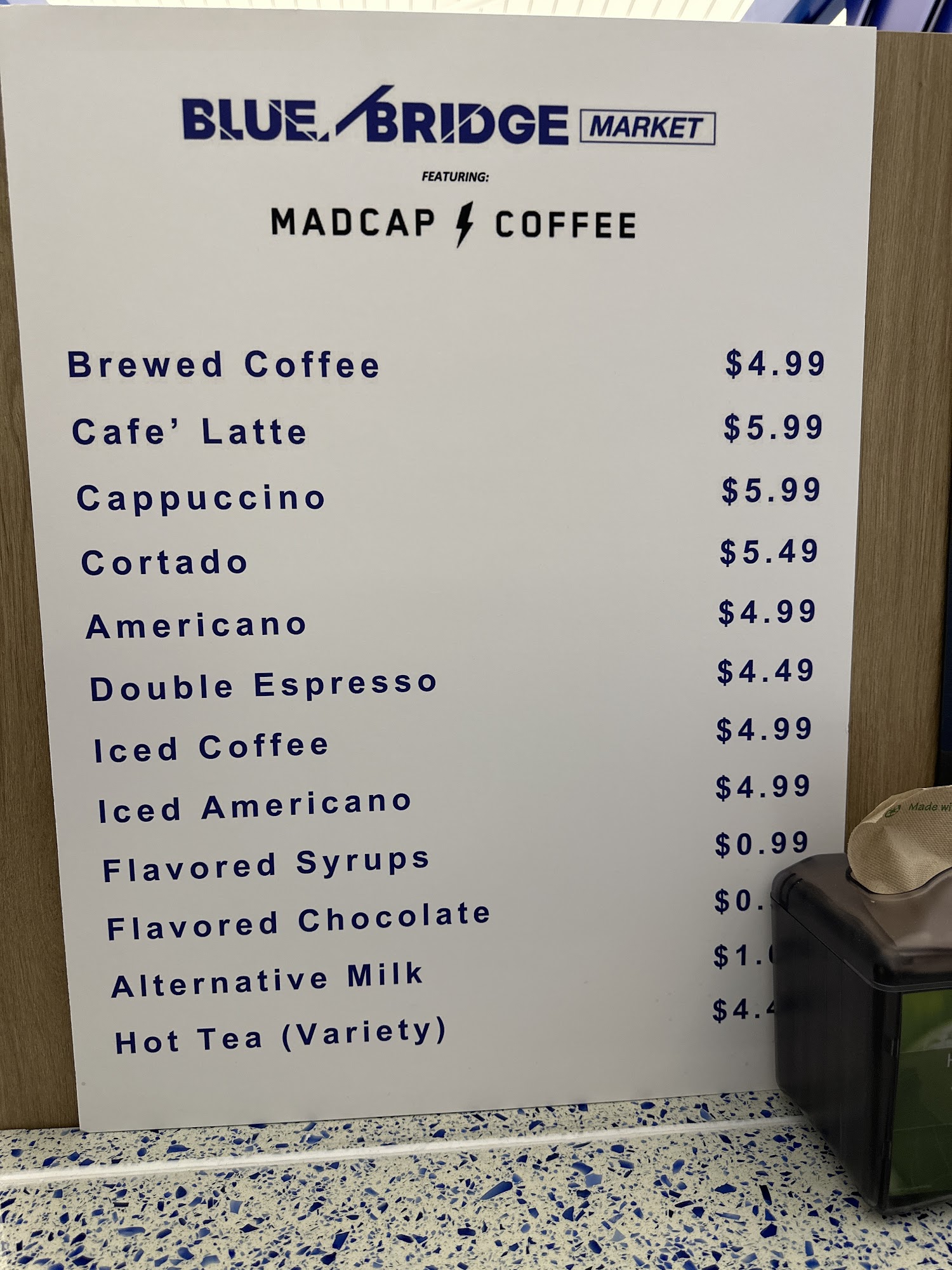 Even though they serve Madcap coffee it’s poorly prepared. Love Madcap downtown- this is not the same taste. I actually think the Starbucks in the terminal is better! I asked for a cappuccino and got a 16 oz drink with foamed milk. Bland.