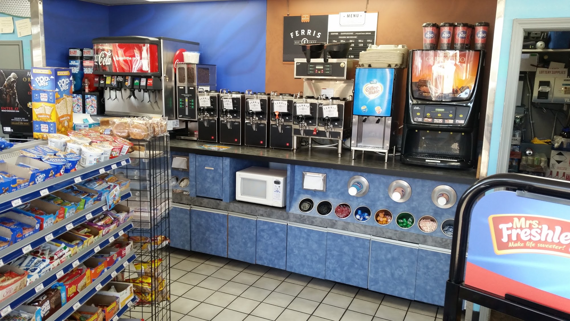 Your typical gas station. Nothing really special about it. Although what's easy to get in, fill up my car and get out in about 5 to 6 minutes. I did not go inside so I cannot speak to the staff or availability of products within.