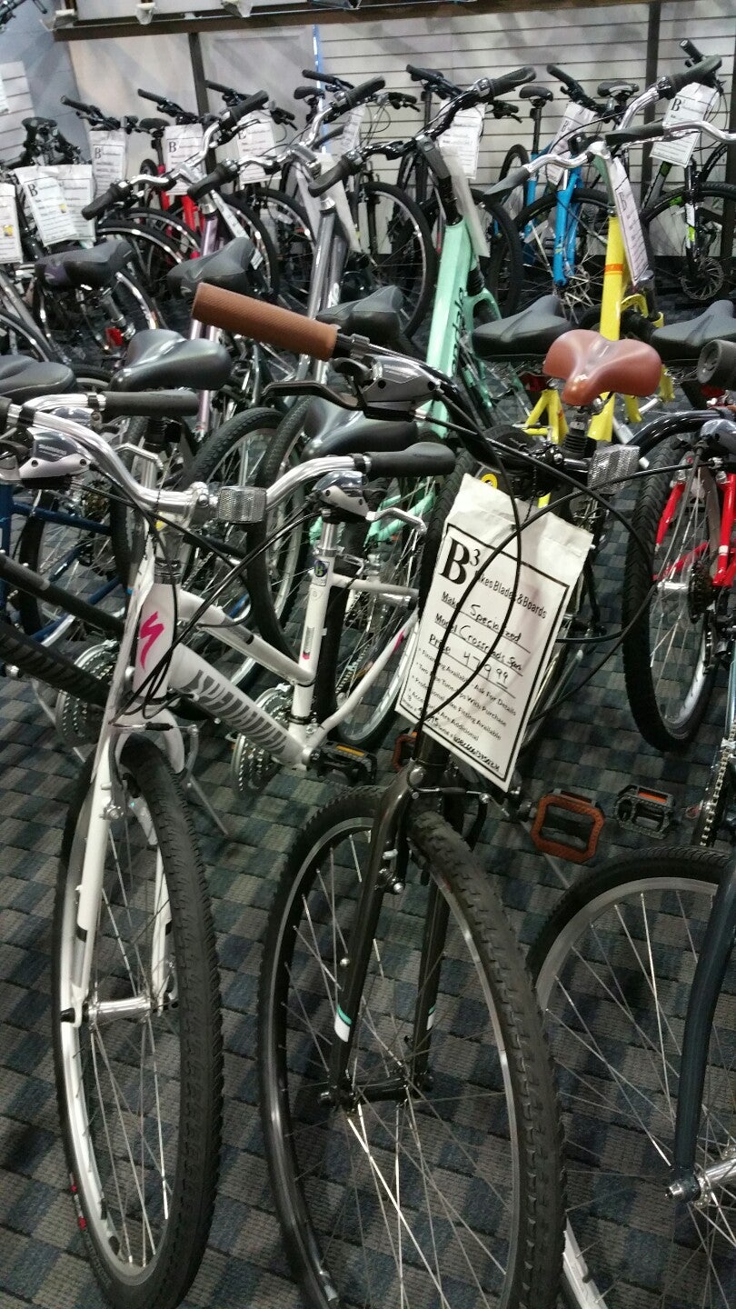 Bikes Blades & Boards is a great local bike shop with top notch service at very reasonable prices. It is a great place to buy a bike or have it serviced, often with better and cheaper service than big box retailers. The staff are really professional and cool, very experienced, and know a lot about bikes. They are dedicated to helping people find the exact bike or part to meet their needs, offering great product knowledge without a forced sale. Customers report excellent experiences purchasing bikes over many years and getting quick, helpful repairs. The shop also services ice skates. Many customers absolutely recommend B3 as the best people to interact with for anyone needing help with a bike, stating you won't be disappointed.