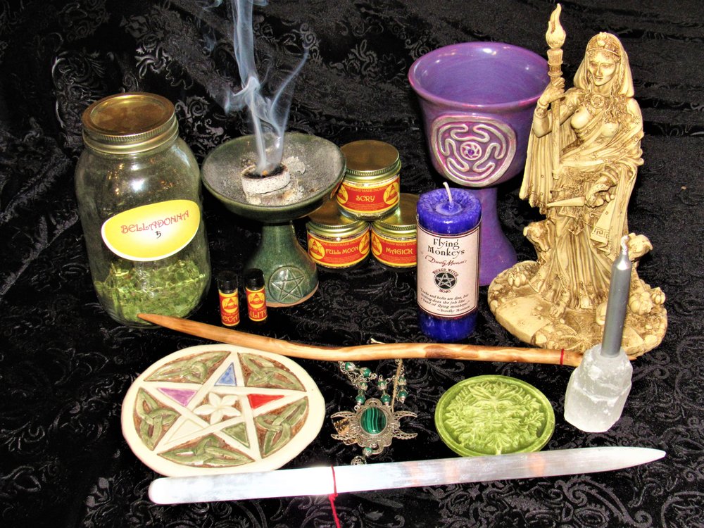 Awarded Best Witchcraft Store 2017. We are the largest pagan, witchcraft, magick and metaphysical store in Michigan. We have over 1000 books, 200 tarot decks, 350+ herbs and incense resins, 125+ essential oils. Handmade ritual tools including hand forged athames. Hard to find items from England. HUGE selection of crystals and crystal jewelry including 250 tumbles. Large selection of incense, oils, burners... BIG selection of candles including popular spell candles, voodoo/hoodoo molded ritual candles, candles of all sizes and colors! Large selection and best prices on statues and wall plaques. Pendulums, rune sets and other divination tools. Specialist tools for traditional witchcraft. Also free public classes and rituals and Tarot Reading