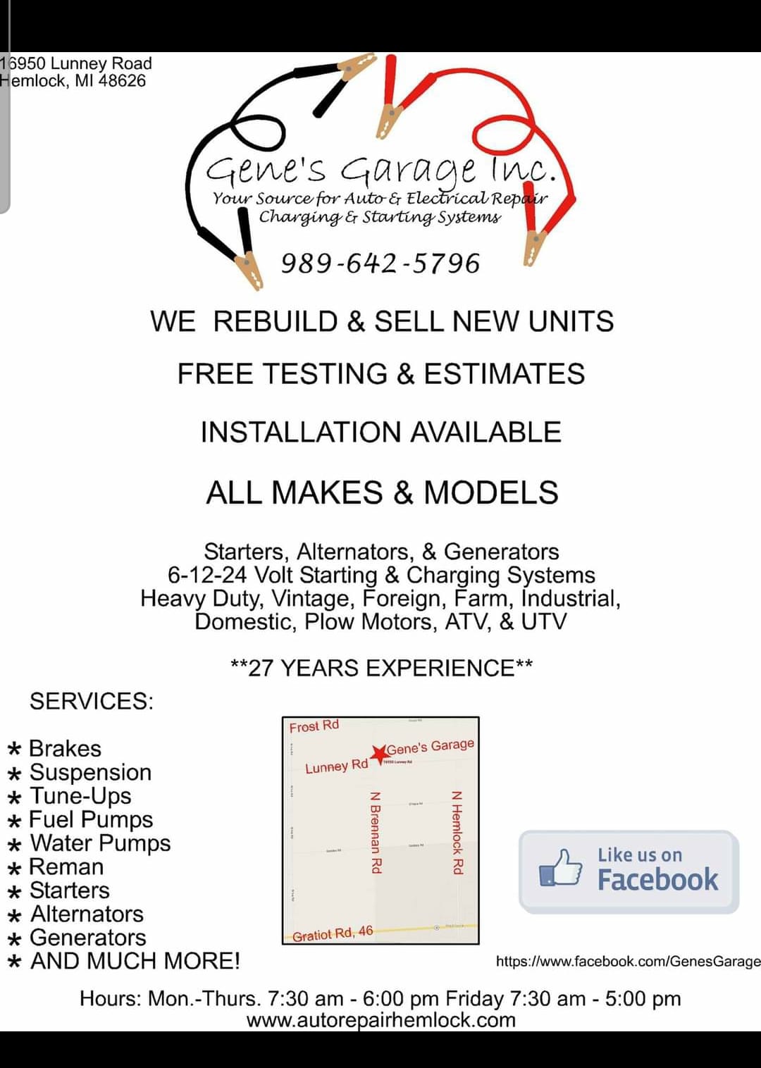 Gene's Garage Inc. in Hemlock, MI, is a trusted auto repair shop known for its honest and hardworking mechanics. They offer a wide range of services for all makes and models, including oil changes, remanufactured starters, auto electrical repairs, and suspension work. Customers appreciate the quick and efficient service, as well as the thorough inspections and clear diagnoses provided by the team. Many reviews highlight the fair pricing and the exceptional quality of work done at Gene's Garage. Longtime customers have consistently praised the knowledgeable and friendly staff, making it a go-to place for vehicle repairs for over a decade. One customer shared an experience where Gene not only diagnosed a problem quickly but also arranged for a wrecker on a Sunday, demonstrating a commitment to customer service. The garage is not just about repairs; it’s about building relationships with the community. Customers feel grateful for the care and support provided, especially in emergencies. Whether it’s a simple tune-up or a complex repair, Gene's Garage aims to ensure that the job is done right the first time. With a reputation for reliability and a family-like atmosphere, Gene's Garage Inc. stands out as a top choice for anyone in need of automotive services.